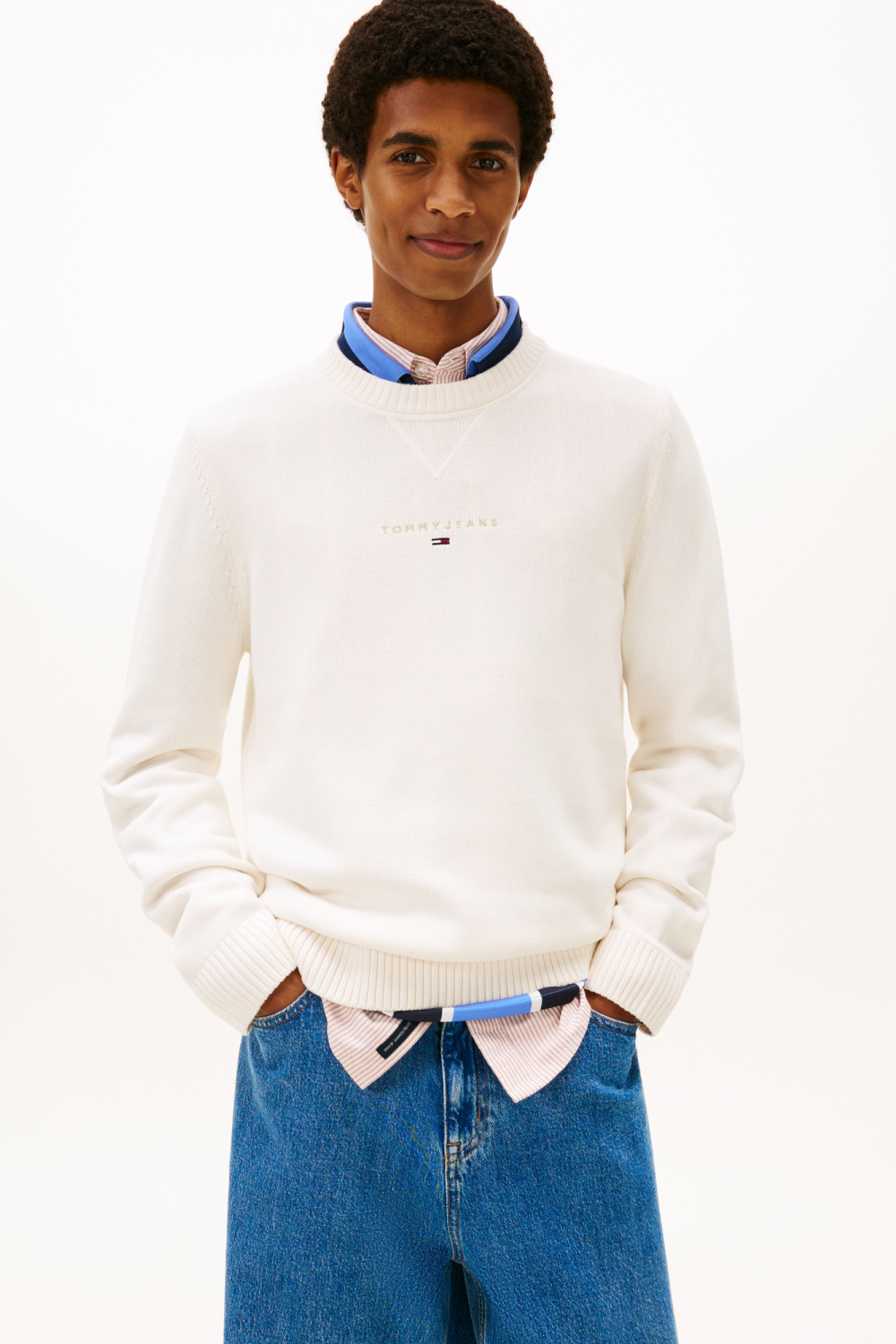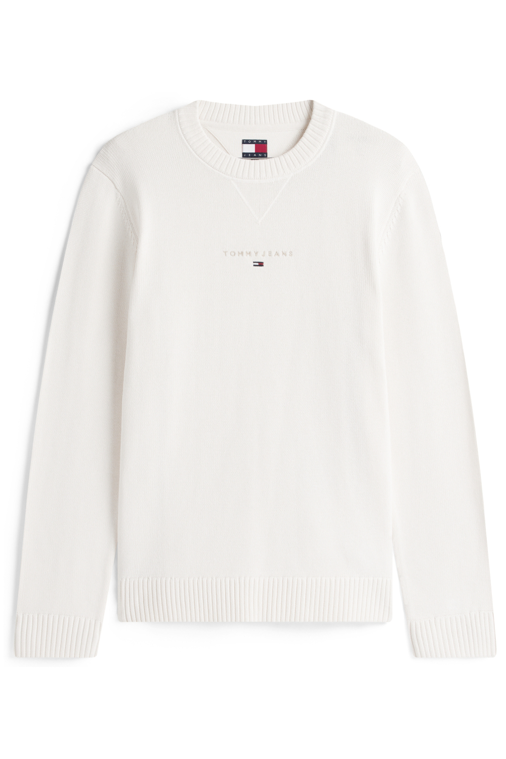 Deze Tommy Jeans trui in de kleur YBH ANCIENT WHITE is de perfecte mix van comfort en stijl. Met een regular fit en een ronde hals, heeft deze trui een subtiele en tijdloze uitstraling. Het tekstpatroon op de borst voegt een speelse touch toe zonder te overweldigen. Gemaakt van 100% katoen, voelt de stof zacht aan op de huid en biedt het voldoende warmte, ideaal voor de winterse dagen. Deze trui leent zich uitstekend voor verschillende gelegenheden. Draag hem casual met een jeans voor een ontspannen weekenduitstraling of combineer met een overhemd voor een iets formelere setting, zoals een etentje. Dankzij de normale lengte en lange mouwen, blijft de trui de hele dag comfortabel zitten en zorgt hij voor een moderne look. Of je nu een dagje op kantoor bent of met vrienden afspreekt, deze Tommy Jeans trui is een veelzijdige keuze.