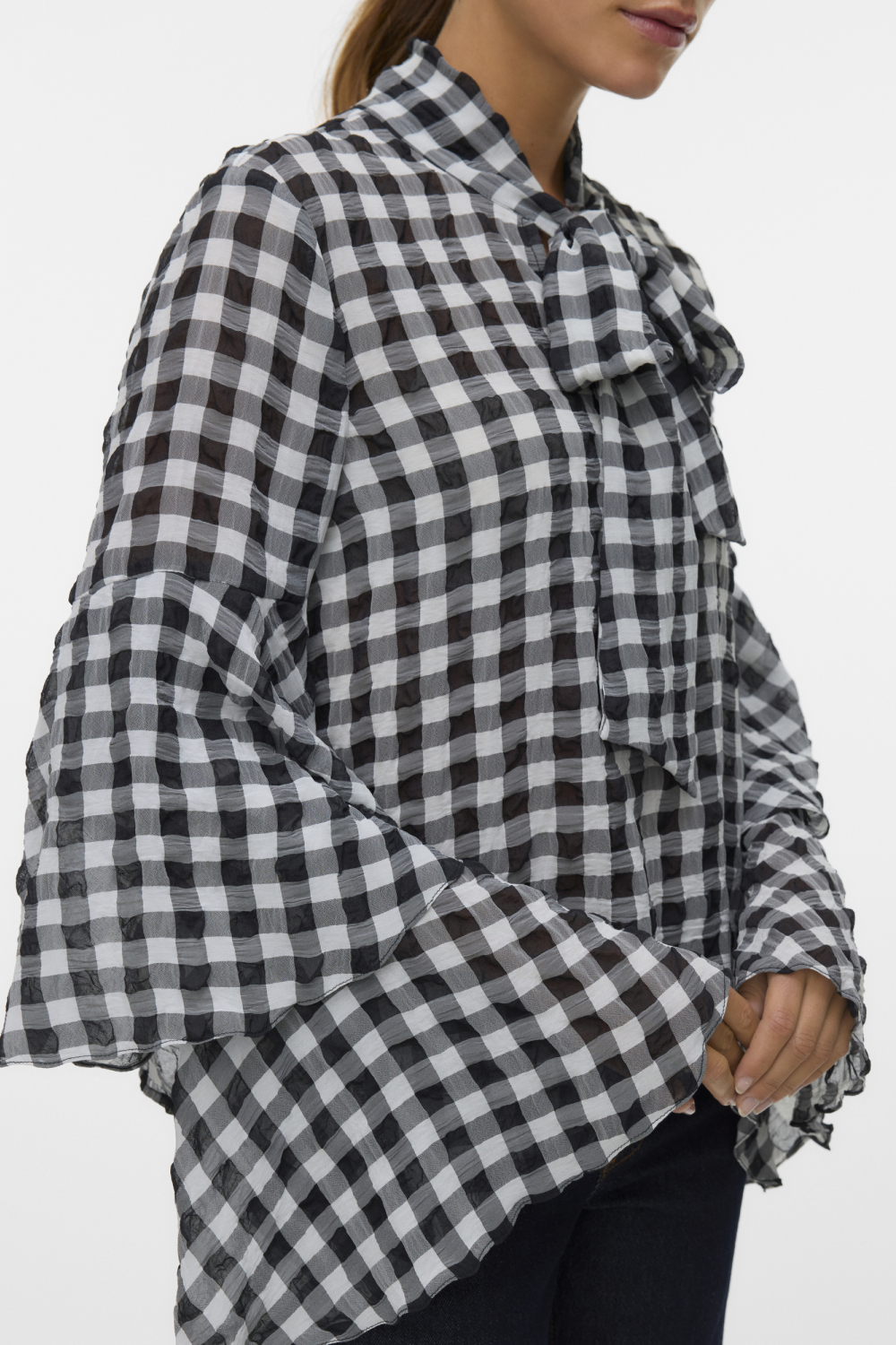 Deze chique geblokte blouse van Vero Moda, in de kleur black/cloud dancer, biedt een casual maar stijlvolle uitstraling voor de winter. De blouse is vervaardigd uit 50% polyester en 50% gerecycled polyester, wat niet alleen comfort maar ook duurzaamheid biedt. Met een regular fit pasvorm en een opvallende shawlkraag, valt deze blouse op in iedere garderobe. De lange mouwen, afgewerkt met speelse details, voegen een unieke flair toe, waardoor deze geschikt is voor zowel een dag op kantoor als een gezellige avond met vrienden. Het tijdloze geblokte patroon maakt het eenvoudig om te combineren met je favoriete jeans of een nette broek, afhankelijk van de gelegenheid. De blouse heeft een normale lengte en is ontworpen om veelzijdig te zijn. Of je nu een casual look wilt creëren of iets geraffineerder voor een bijeenkomst, deze blouse van Vero Moda past perfect. Dankzij de aandacht voor detail en de duurzame materiaalkeuze, is dit een bewuste toevoeging aan je kledingkast die je keer op keer kunt dragen.