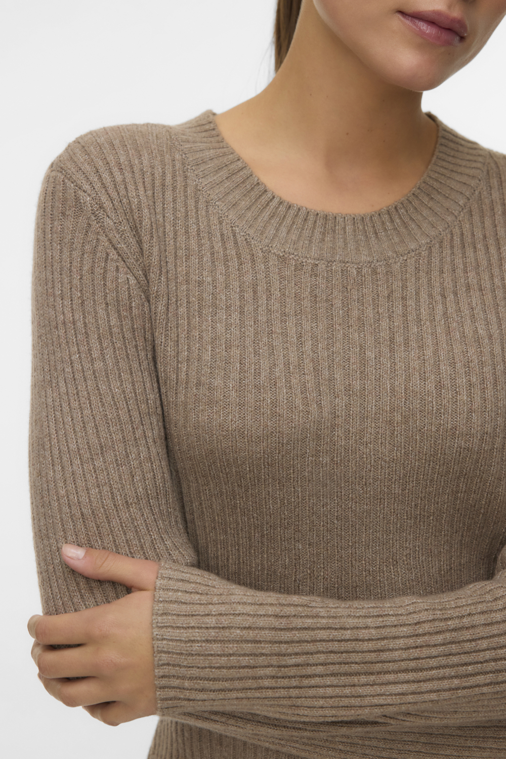 Deze charmante Vero Moda jurk in de kleur Fossil Melange is een veelzijdige toevoeging aan je collectie. De ribstructuur geeft het knitwear-design een subtiele textuur, terwijl de ronde hals en lange mouwen zorgen voor een klassieke uitstraling. Dankzij de regular fit en korte lengte is deze jurk ideaal om zowel casual als chic te dragen. Of je nu een informele lunch hebt of een avondje uit plant, deze jurk biedt stijl en comfort. De Vero Moda jurk heeft een tijdloos ontwerp dat gemakkelijk te combineren is met verschillende accessoires. De zachte tint past perfect bij warme herfst- en winterkleuren, en de fijne knitwear maakt het een geschikt stuk voor elk seizoen. Draag het met je favoriete sneakers voor een casual look overdag, of combineer het met stijlvolle hakken voor een verfijnde avondoutfit. Deze jurk is een praktische en stijlvolle keuze voor uiteenlopende gelegenheden.