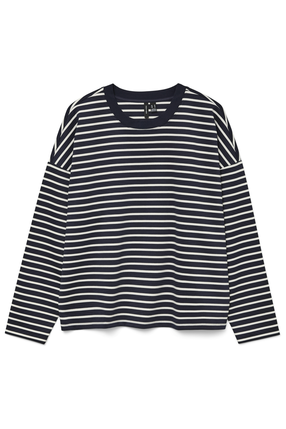 Dit sfeervolle streep T-shirt van Vero Moda is een ideale keuze voor de winterse dagen. Met zijn regular fit en lange mouwen biedt het comfort en stijl in één. De subtiele ronde hals en het klassieke navy blazer/sneeuwwitte patroon geven het T-shirt een tijdloze uitstraling, terwijl de zachte combinatie van polyester, viscose, en elastaan zorgt voor een aangename pasvorm. Dit T-shirt is niet alleen casual, maar ook een veelzijdige aanvulling die je moeiteloos combineert met verschillende outfits. Of je nu een dagje ontspannen thuis doorbrengt of een gezellige brunch met vrienden plant, dit T-shirt past perfect bij elke gelegenheid. De normale lengte maakt het eenvoudig te stylen met je favoriete jeans of een chique rok. Het patroon met opvallende strepen zorgt ervoor dat je een modieuze uitstraling hebt die je keer op keer kunt dragen. Voeg deze praktische en aantrekkelijke optie aan je garderobe toe voor een veelzijdige, casual stijl.