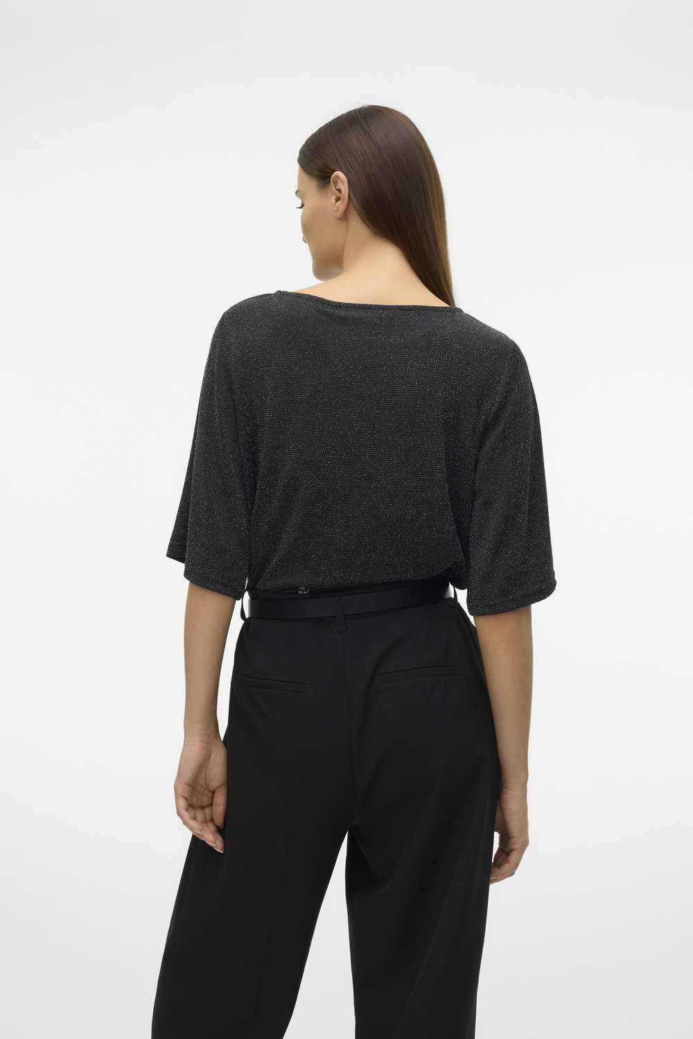 Dit Vero Moda T-shirt in Black/SILVER LUREX is een elegante toevoeging aan je wintergarderobe. Het shirt heeft een regular fit en is gemaakt voor dames, met een ronde hals en korte mouwen. De subtiele glitters in de stof geven een feestelijke uitstraling, waardoor het perfect is voor een party setting. De eenvoudige maar stijlvolle afwerking zonder zakken biedt een strakke look die gemakkelijk te combineren is met zowel een chique rok als een casual jeans, afhankelijk van de gelegenheid.