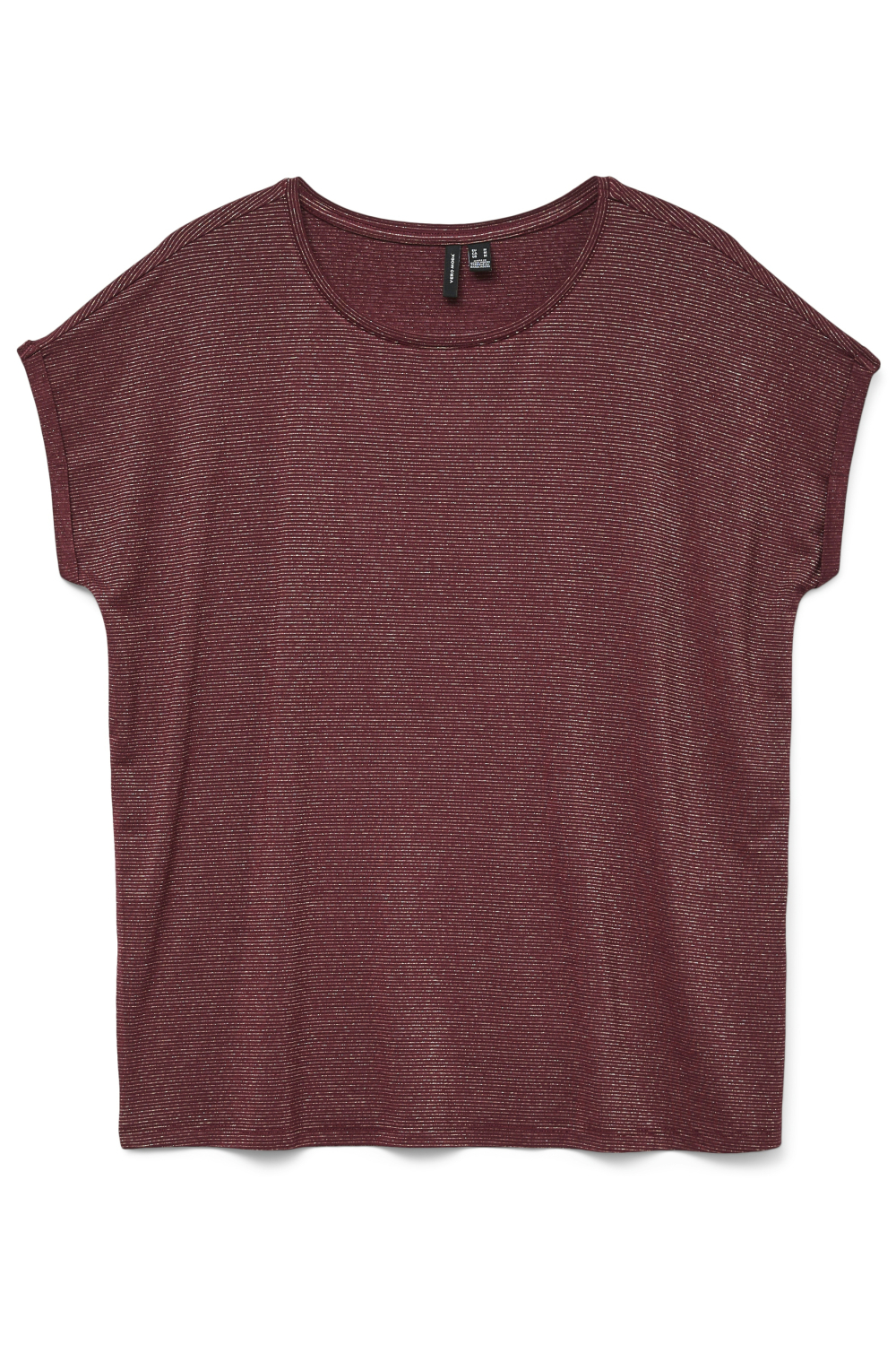 Dit casual Vero Moda T-shirt in de kleur Syrah met een sprankelende goud lurex finish is een stijlvolle keuze voor jouw dagelijkse outfits. Met een regular pasvorm en korte mouwen biedt dit T-shirt comfort en bewegingsvrijheid, ideaal voor zowel ontspannen dagen thuis als voor een informele gelegenheid. De subtiele glitter in de stof geeft het een speelse twist, terwijl de ronde halslijn zorgt voor een klassieke touch.