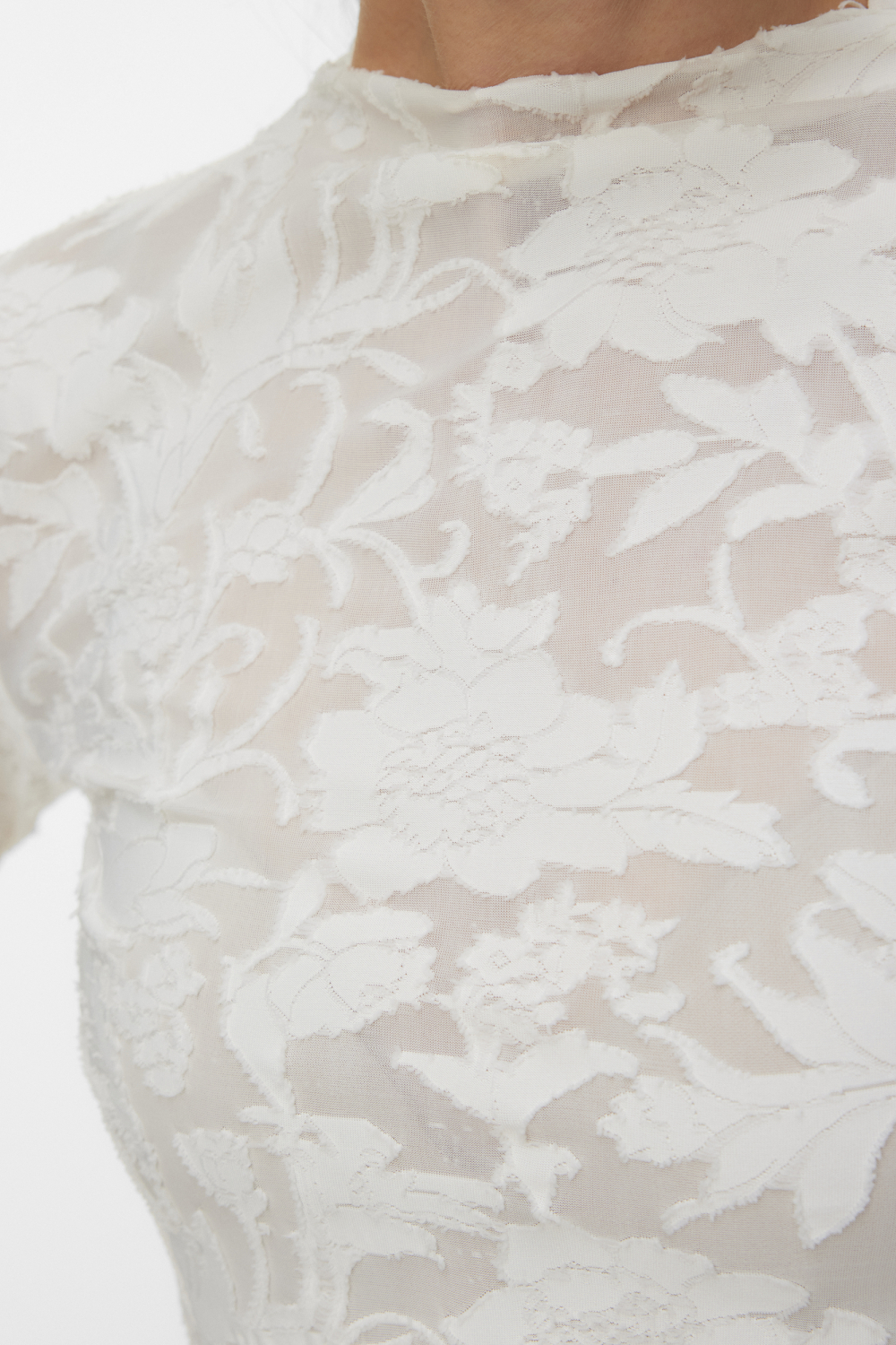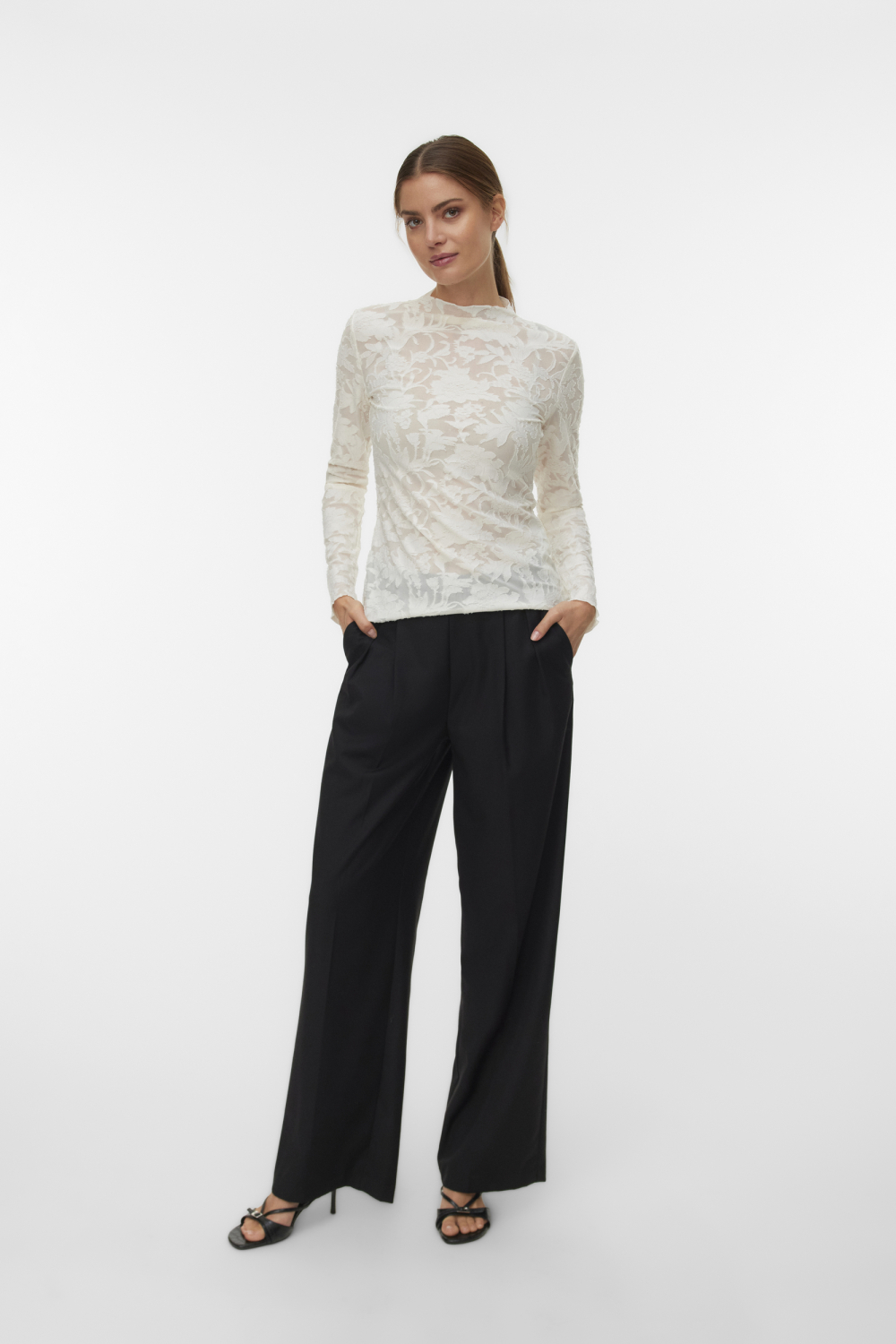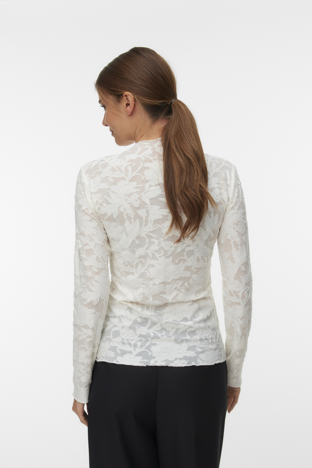 Dit elegante snow white T-shirt van Vero Moda onderscheidt zich door zijn verfijnde kanten patroon en slim fit pasvorm. Gemaakt van een soepele mix van 96% polyester en 4% elastaan, biedt het een subtiele stretch voor een comfortabele dag. De high neck en lange mouwen geven het shirt een frisse en stijlvolle uitstraling. Het fijne kantpatroon zorgt voor een speelse, maar toch verfijnde look die gemakkelijk te combineren is voor verschillende gelegenheden.