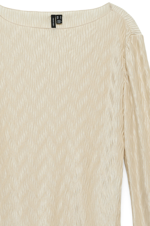 Dit Vero Moda T-shirt in de kleur pumice stone is een casual en veelzijdig kledingstuk voor dames. Gemaakt van 100% polyester, biedt het je een comfortabele pasvorm die de hele dag goed blijft zitten. Met zijn ronde hals en lange mouwen is dit T-shirt ideaal voor de koudere wintermaanden. Het subtiele structuurpatroon voegt een extra dimensie toe, waardoor je outfit niet alleen comfortabel maar ook stijlvol is.