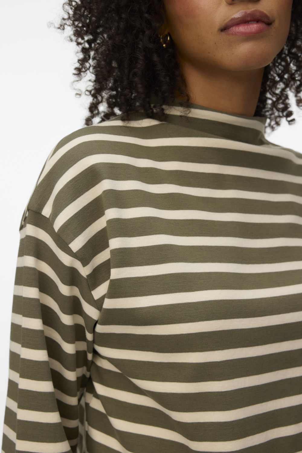 Met dit casual gestreepte T-shirt van Vero Moda voeg je een comfortabele en modieuze touch toe aan je lentegarderobe. Het oversized ontwerp combineert perfect met de ronde halslijn, waardoor je een relaxte maar stijlvolle uitstraling krijgt. Gemaakt van 100% biologisch katoen, biedt dit dames T-shirt niet alleen draagcomfort, maar is het ook een duurzame keuze. De streepjes in natuurlijke tinten zorgen voor een tijdloos design dat makkelijk te combineren is met verschillende outfits. Of je nu een dagje uit plant of gewoon thuis blijft, dit T-shirt is veelzijdig in gebruik. De lange mouwen maken het ideaal voor de koelere lentedagen, terwijl de normale lengte zorgt voor een flatterende pasvorm. Combineer het met een lichte broek voor een casual look, of ga voor een meer gepolijste uitstraling met een nette rok. Dit Vero Moda T-shirt is een handige aanvulling voor iedereen die van comfort en stijl houdt.