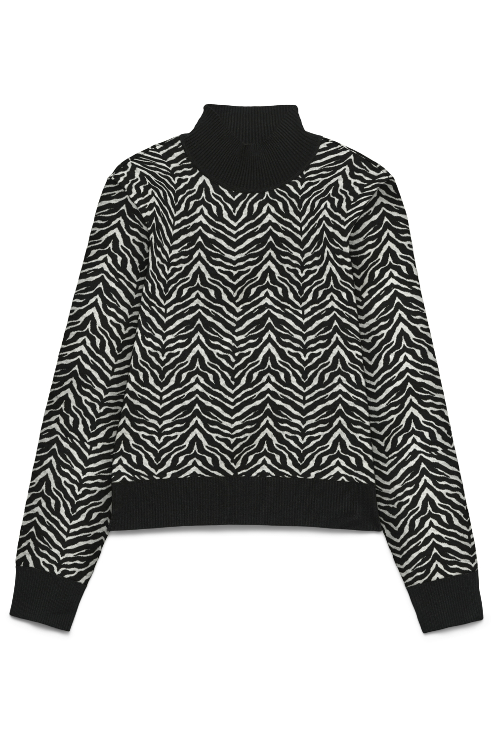 Deze stijlvolle trui van Vero Moda is een veelzijdig stuk voor je wintergarderobe. Met een grafisch patroon in zwart en wit, voegt het een speelse maar toch elegante touch toe aan je outfit. De regular fit en de hoge hals bieden zowel comfort als een moderne look, ideaal voor de koude dagen. De lange mouwen maken het perfect voor een gezellige dag binnen of een casual uitje buiten. Gemaakt van knitwear, biedt deze trui duurzaamheid zonder in te leveren op stijl. De normale lengte maakt het een gemakkelijk te combineren kledingstuk, of je nu kiest voor een nette broek of een comfortabele jeans.