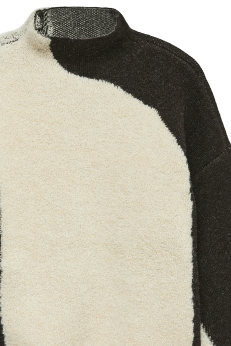 Deze Vero Moda damestrui brengt stijl en comfort samen in een opvallend design. De regular fit zorgt voor een ontspannen pasvorm, terwijl het high neck ontwerp je warm houdt tijdens koude winterdagen. Met een uniek kleurcontrast van zwart en crème is deze trui een echte blikvanger die een artistieke touch aan je look geeft. De structuur van de stof zorgt voor diepte en een luxueuze uitstraling, ideaal voor zowel casual als meer formele gelegenheden.