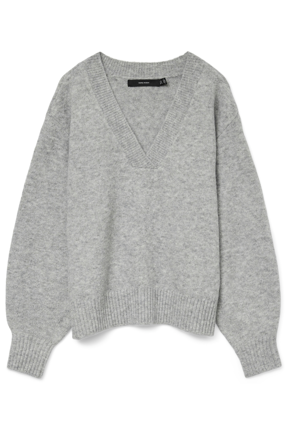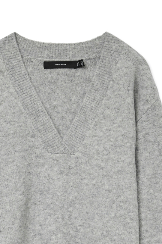 Deze Vero Moda trui in de prachtige kleur light grey melange is de perfecte aanvulling op je dagelijkse garderobe. Met een relaxte pasvorm en lange mouwen biedt deze trui zowel comfort als stijl. De V-hals zorgt voor een subtiele elegantie, terwijl het breipatroon een warme, gezellige uitstraling geeft die ideaal is voor elk seizoen. Gemaakt van hoogwaardige knitwear, garandeert de trui een aangenaam draagcomfort, dag in dag uit. Dankzij het veelzijdige en tijdloze ontwerp is deze Vero Moda trui eenvoudig te combineren met diverse kledingstijlen. Draag het met je favoriete jeans voor een casual look of combineer met een nette rok voor een meer geklede uitstraling. Of je nu thuis ontspant, aan het werk bent of een rustig middagje in de stad doorbrengt, deze trui biedt de perfecte balans tussen comfort en stijl. Voeg dit veelzijdige kledingstuk toe aan je verzameling en geef je outfit een stijlvolle boost.