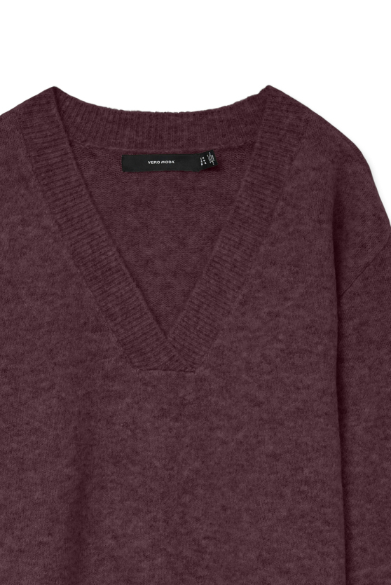 Deze elegante Vero Moda trui is een verfijnde keuze voor de wintergarderobe van elke dame. Gemaakt met een relaxed fit, biedt deze trui een comfortabele pasvorm die je warm houdt tijdens de koude maanden. De rijke wijnrode kleur, bekend als Winetasting/MELANGE, geeft de trui een verfijnde uitstraling die zowel opvalt als tijdloos is. De V-hals accentueert subtiel de halslijn, terwijl de normale lengte en lange mouwen zorgen voor een casual maar stijlvolle look. De Vero Moda trui is veelzijdig genoeg om te dragen naar verschillende gelegenheden. Combineer hem bijvoorbeeld met een paar jeans voor een ontspannen dagje uit, of kies voor een nette rok en laarzen voor een meer verfijnde look op kantoor. Dankzij de stijlvolle knitwear-stijl, kun je deze trui makkelijk combineren met zowel casual als formele stukken, waardoor het een waardevolle aanvulling is op je dagelijkse collectie. Of je nu thuis blijft of een middagje de stad in plant, deze trui biedt altijd comfort en stijl.