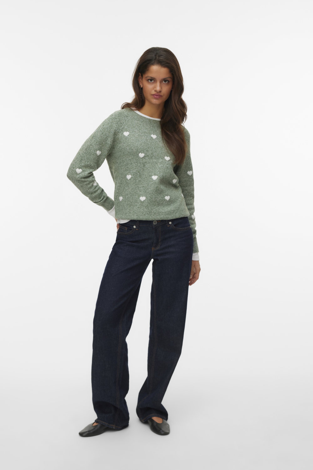 Deze Vero Moda trui voor dames combineert comfort met een speelse uitstraling. De trui heeft een regular fit, waardoor hij comfortabel om je lichaam valt zonder strak te zitten. De zachte groene stof is versierd met een charmant patroon van witte hartjes, wat een uniek en subtiel detail toevoegt. De ronde halslijn zorgt voor een klassieke look, en de lange mouwen maken deze trui ideaal voor de koelere dagen. De Vero Moda trui is perfect voor casual gelegenheden en biedt een moeiteloze stijl die je gemakkelijk kunt combineren met verschillende outfits. Draag hem bijvoorbeeld op een jeans voor een ontspannen dagje uit of combineer hem met een nette rok voor een meer verzorgde uitstraling. Dankzij de normale lengte is deze trui veelzijdig te dragen en blijft hij in elk seizoen een favoriet in je collectie.