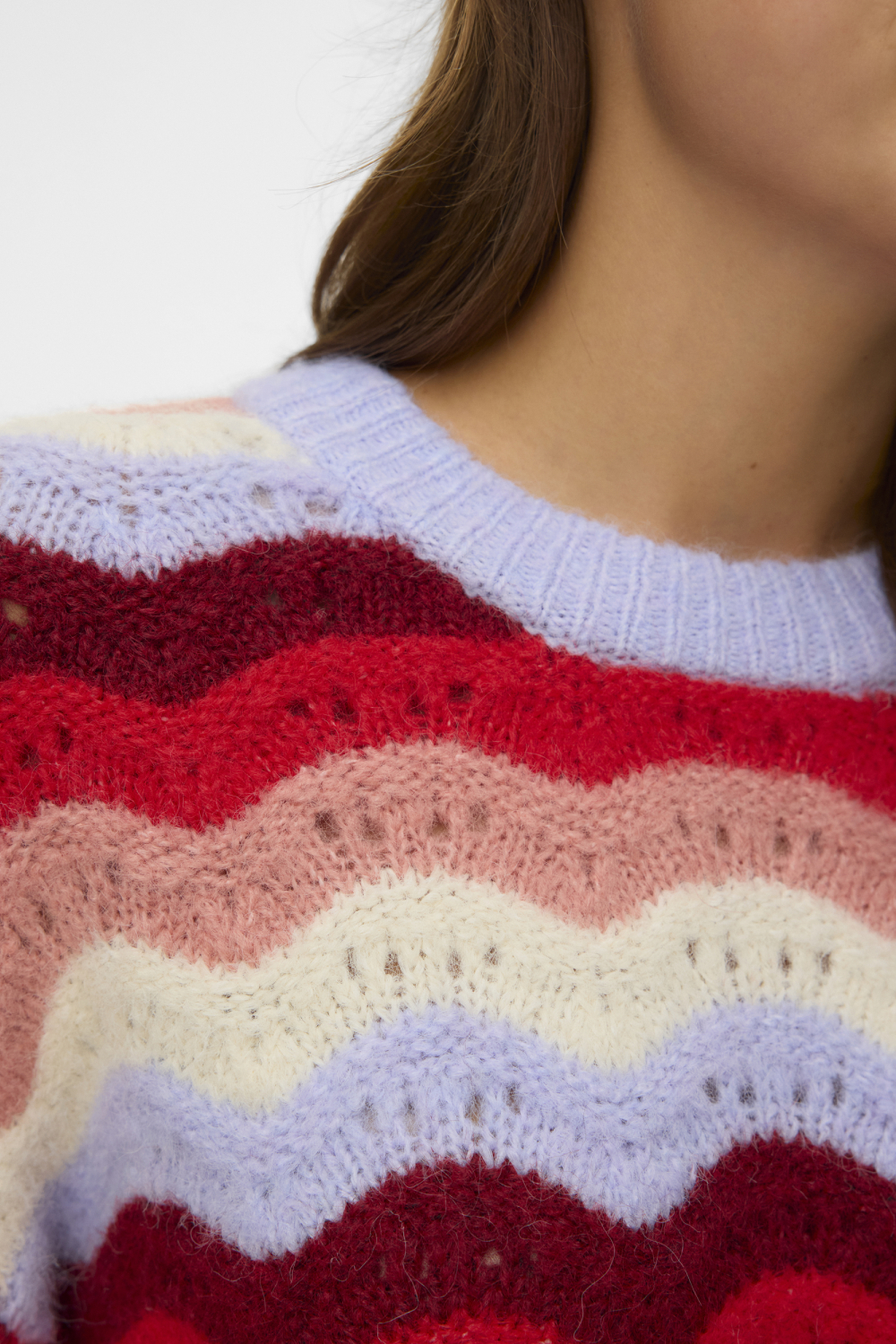 Deze kleurrijke Vero Moda trui is een perfecte aanvulling voor je wintergarderobe. Met zijn speelse golfpatroon in diverse tinten paars, rood en crème, biedt deze trui een frisse en vrolijke uitstraling. Gemaakt van hoogwaardige knitwear, voelt de stof zacht aan en biedt het de hele dag comfort. De regular fit past zich moeiteloos aan jouw figuur aan, terwijl de lange mouwen en de ronde hals zorgen voor een klassieke, doch eigentijdse look. Deze trui is een ideale keuze voor dagelijks gebruik of een informele gelegenheid.