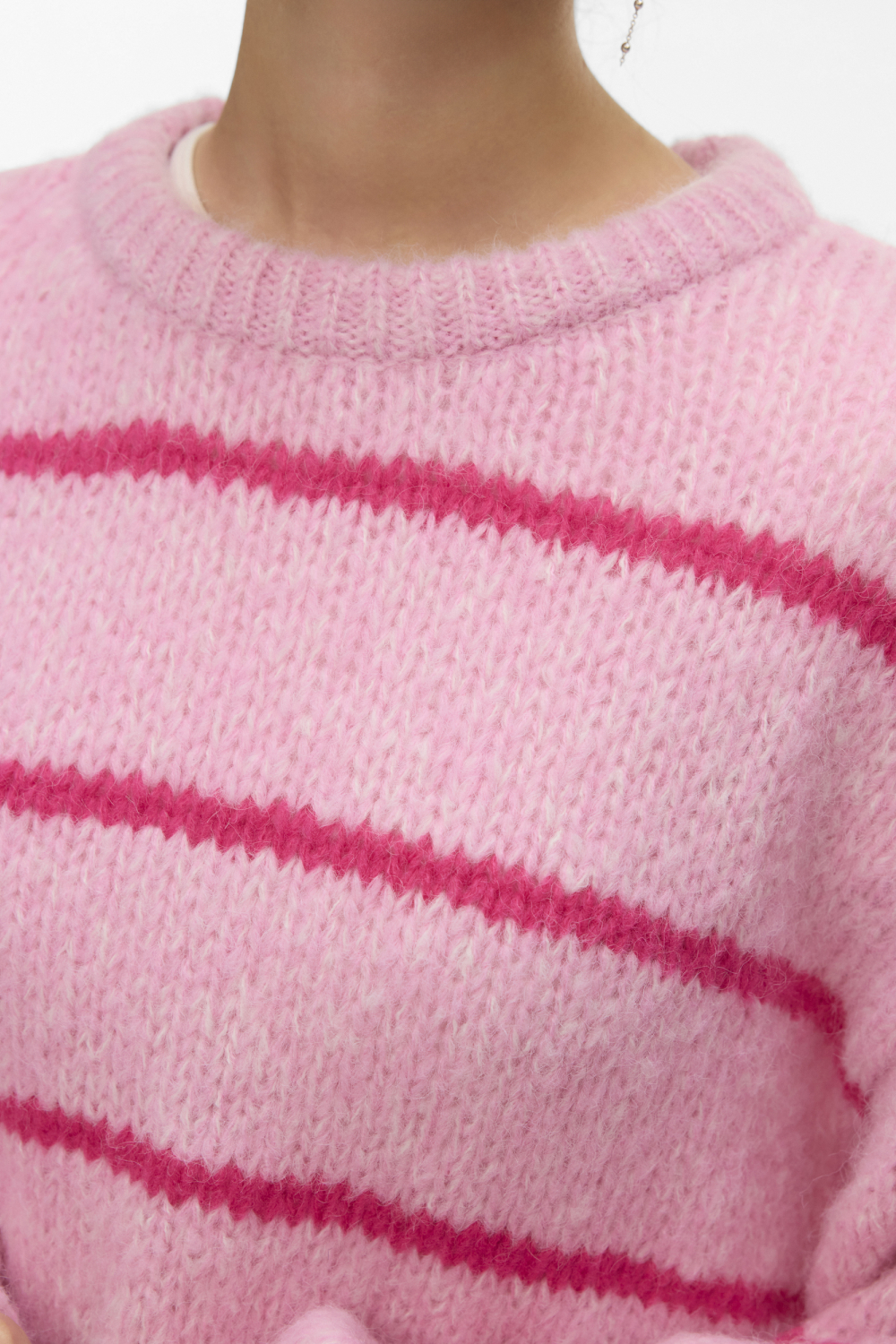 Deze Vero Moda trui is de perfecte aanvulling op jouw voorjaarsgarderobe. Met een regular fit pasvorm en een comfortabele ronde hals, biedt deze trui zowel stijl als draaggemak. Gemaakt van 100% polyester is de stof zacht en licht, ideaal voor de frisse lentedagen. De opvallende roze en paarse strepen geven de trui een speelse en modieuze uitstraling. Of je nu een wandeling maakt in het park of een casual dag op kantoor hebt, deze trui past bij elke gelegenheid. De combinatie van het knitwear ontwerp met lange mouwen maakt dit kledingstuk veelzijdig inzetbaar. De normale lengte zorgt ervoor dat je het gemakkelijk kunt combineren met zowel jeans als leggings. De frisse kleuren en de comfortabele pasvorm maken het een aantrekkelijke keuze voor dagelijkse outfits. Voeg deze Vero Moda trui toe aan je garderobe en geniet van het tijdloze design en de veelzijdige toepassingen die het biedt, zowel voor ontspannen dagen thuis als voor informele uitjes.