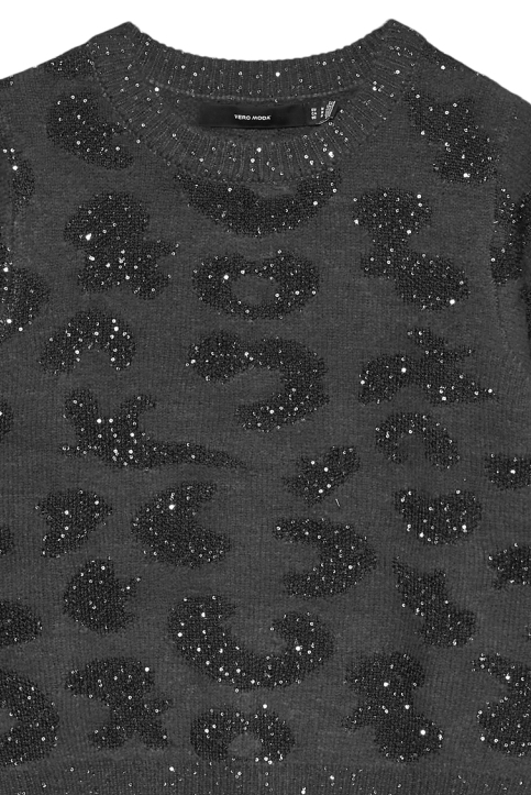 Deze stijlvolle trui van Vero Moda, uitgevoerd in een verfijnde Dark Grey Melange met zwarte pailletten, voegt een vleugje glamour toe aan je wintergarderobe. Met een regular fit en een ronde hals biedt deze trui een comfortabele pasvorm voor dagelijks gebruik. Het opvallende palet van pailletten zorgt voor een speels contrast en maakt de trui geschikt voor zowel casual als meer geklede gelegenheden. De korte mouwen en de normale lengte geven het een eigentijdse uitstraling, ideaal om te combineren met zowel jeans als rokken. Of je nu een avondje uit gepland hebt of een stijlvolle twist aan je dagelijkse outfit wilt geven, deze Vero Moda trui is een veelzijdige keuze. De knitwear stijl laat zich makkelijk mixen met andere garderobestukken en biedt warmte zonder in te boeten aan stijl. Of je hem nu draagt bij een informele lunch of een feestelijk diner, deze trui maakt altijd indruk. Dankzij zijn duurzame samenstelling, houd je er een bewust fashion statement op na.