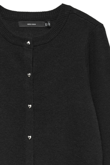 Deze zwarte Vero Moda cardigan is een veelzijdig stuk voor je herfstgarderobe. De regular fit en de lange mouwen zorgen voor ultiem comfort en een casual uitstraling, terwijl de knoopsluiting met subtiele hartvormige knopen een speelse touch geeft aan je look. De ronde halslijn maakt dit vest gemakkelijk te combineren met verschillende tops en jurken, perfect voor zowel een dag op kantoor als een ontspannen weekenduitje. Met zijn klassieke knitwear stijl, biedt dit vest van Vero Moda een tijdloze kijk op comfortabele mode. De normale lengte maakt het vest ideaal voor gelaagde looks, en het zwarte kleurenschema past moeiteloos bij elke outfit. Dit vest voelt zich net zo thuis bij een casual jeans als bij een nette rok, waardoor je gemakkelijk kunt schakelen tussen verschillende situaties en gelegenheden. Voeg dit duurzame kledingstuk toe aan je collectie voor een stijlvolle en milieubewuste keuze.