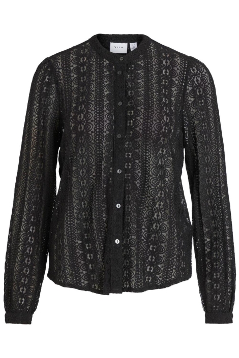 Deze elegante zwarte Vila blouse is een verfijnde toevoeging aan je garderobe. Met zijn prachtige kanten patroon en ronde hals geef je je outfit een subtiele dosis stijl. De regular fit zorgt voor een comfortabele pasvorm, terwijl de doorschijnende stof een speels effect toevoegt aan je look. Ideaal voor zowel een chique cocktailparty als een casual etentje, biedt deze blouse flexibiliteit in stylingopties. Gemaakt van 95% polyamide en 5% elastaan, voelt de blouse zacht aan op de huid en biedt het net genoeg stretch voor optimaal draagcomfort. De knoopsluiting aan de voorkant geeft een klassieke uitstraling, terwijl de lange mouwen met detail afgewerkt zijn voor een extra touch. Combineer deze blouse met een stijlvolle pantalon of een rokje om je look compleet te maken. Perfect voor elke gelegenheid waar je een blijvende indruk wilt maken. Voeg deze veelzijdige Vila blouse toe aan je basiscollectie voor een tijdloze en moderne uitstraling.