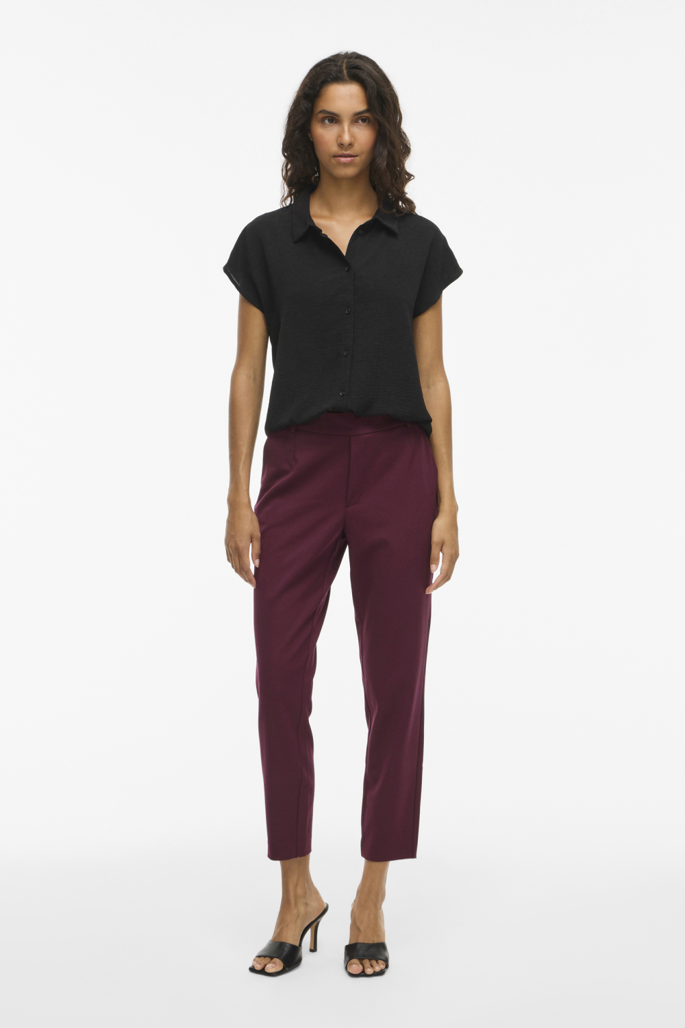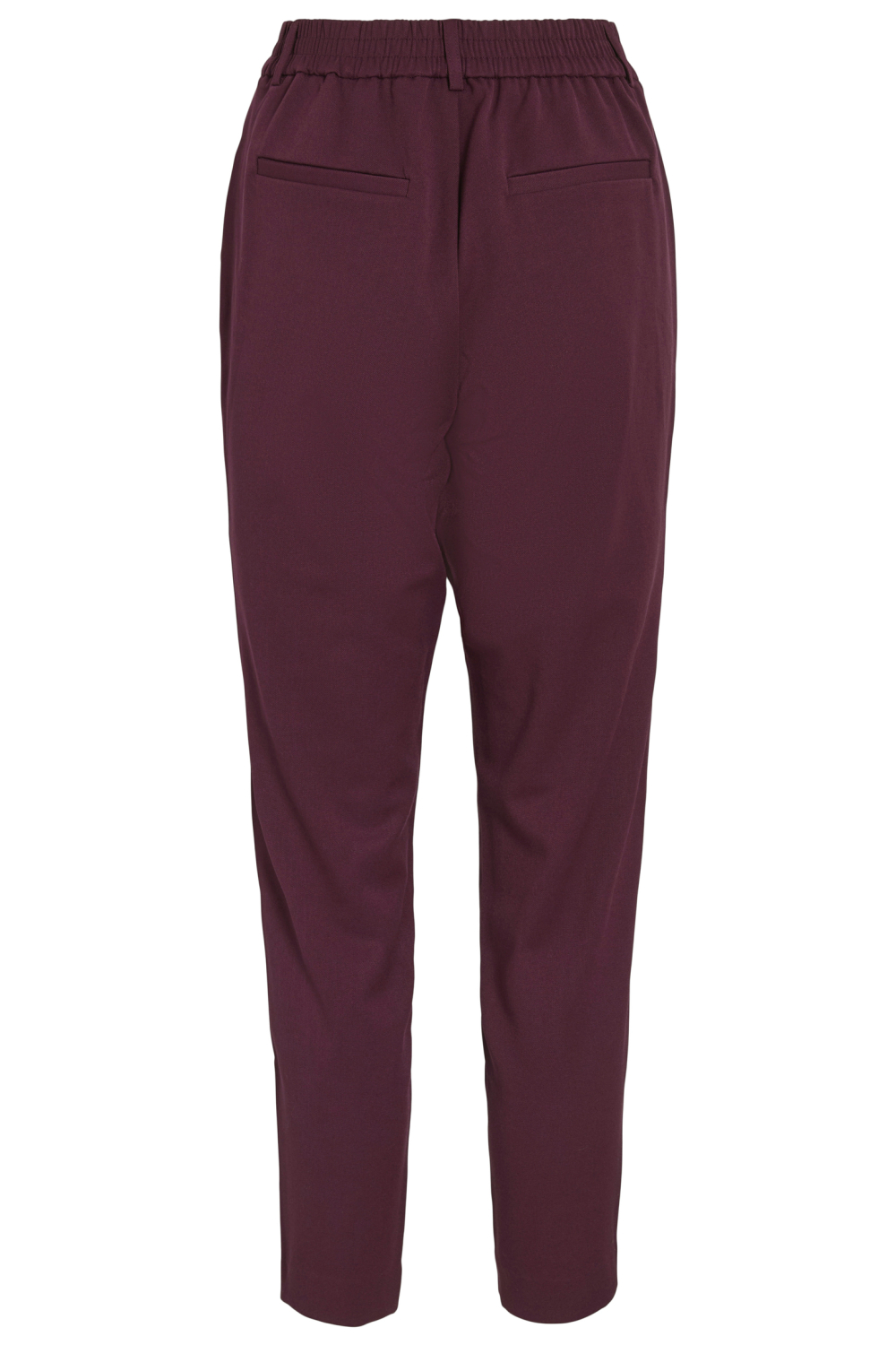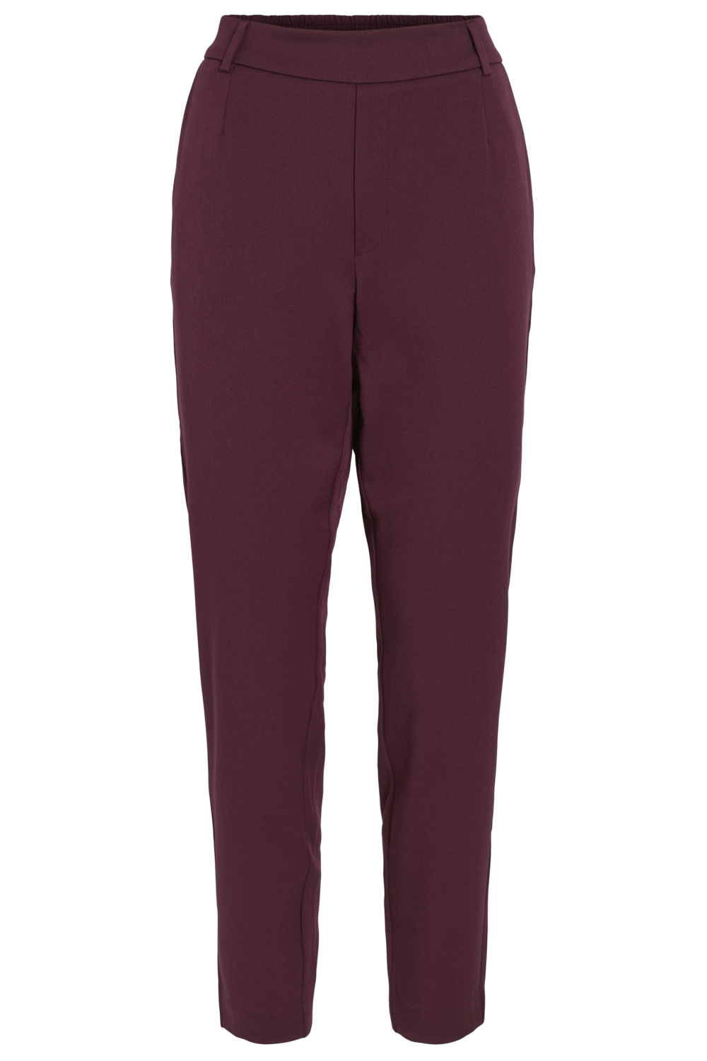 Deze stijlvolle damesbroek van Vila in de kleur 'Fig' combineert comfort met een trendy uitstraling. De broek heeft een slim fit pasvorm die je figuur mooi accentueert en is voorzien van een handige elastische boord voor extra draagcomfort. Gemaakt van een zachte mix van polyester, viscose en elastan, voelt deze broek aangenaam aan op de huid. Steekzakken geven niet alleen een praktische touch, maar zorgen ook voor een casual look waarmee je altijd goed voor de dag komt. De normale lengte en high waist zorgen ervoor dat deze broek veelzijdig te stylen is. Een uitstekende keuze voor een informele werkdag of een avondje uit. Combineer de Vila broek met een paar hakken of sneakers en een blouse of casual top. Of je nu naar kantoor gaat of een lunch met vrienden hebt, met deze broek ben je altijd stijlvol en comfortabel gekleed.