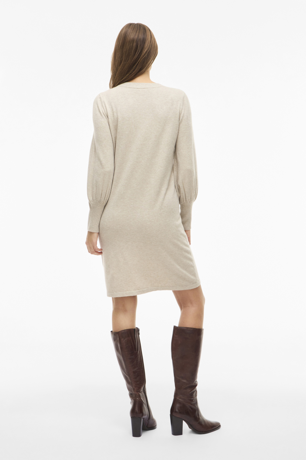• Vila beige dames jurk | Model achteraanzicht