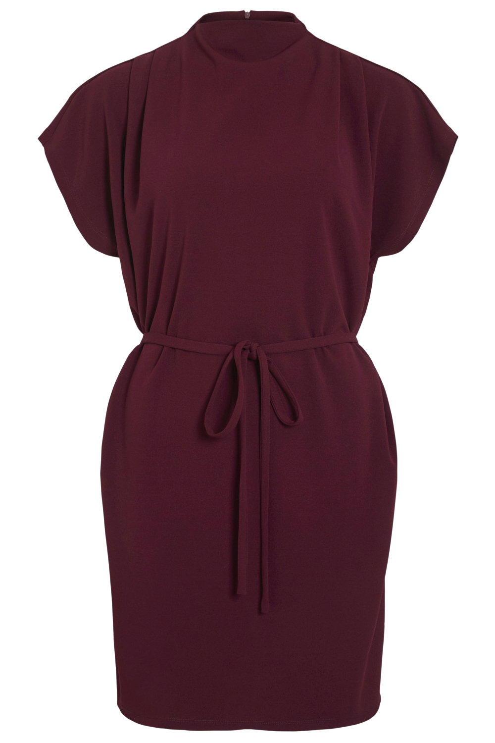 Deze winterjurk van Vila is een veelzijdige toevoeging aan je garderobe. Met zijn halfhoge hals en blinde ritssluiting biedt deze jurk een minimalistische en elegante uitstraling. Gemaakt van 95% polyester en 5% elastan, heeft de jurk een comfortabele regular fit die zich gemakkelijk aanpast aan je vorm en zorgt voor voldoende bewegingsvrijheid. De diepe fig kleur en de subtiele kleedband accentueren je taille, waardoor de jurk zowel stijlvol als flatterend is.