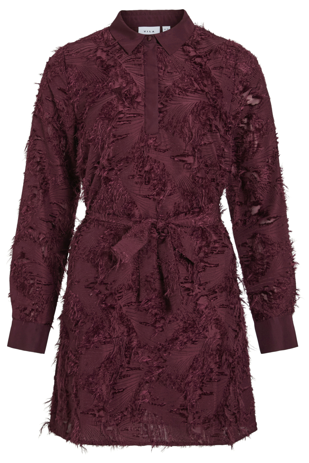 Deze elegante figkleurige jurk van Vila is een stijlvolle toevoeging aan je wintergarderobe. Gemaakt van 100% polyester, biedt de jurk een comfortabele pasvorm met een unieke structuur. De puntkraag en blinde knoopsluiting geven deze jurk een verfijnde uitstraling, terwijl de lange mouwen zorgen voor extra warmte tijdens de koudere maanden. Het korte model voegt een speels element toe aan de algehele look.