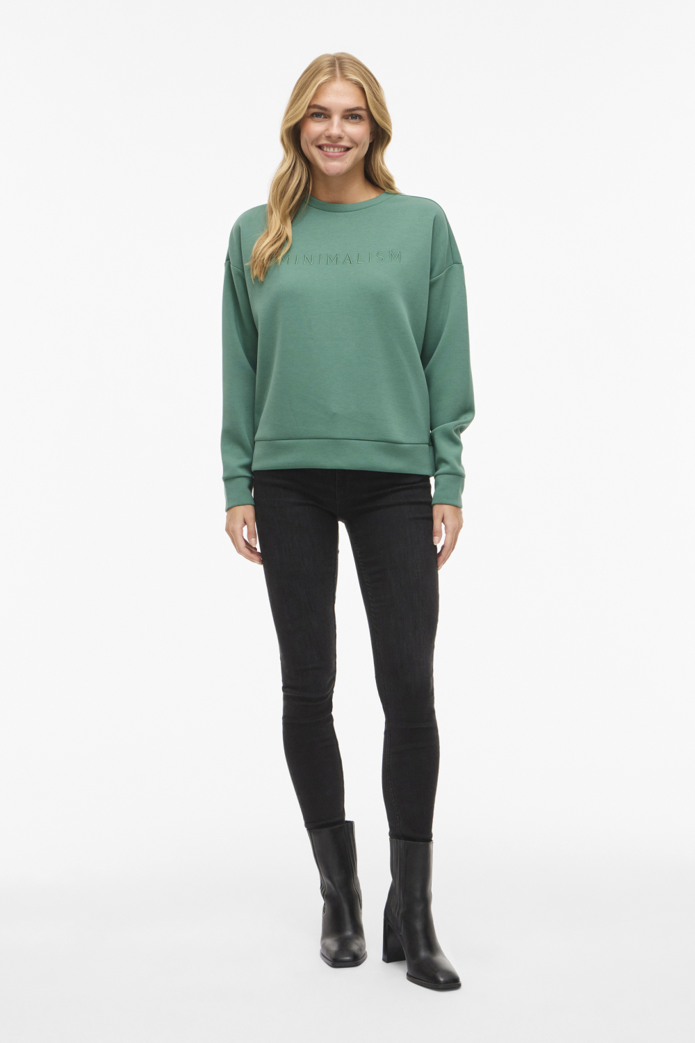 Deze verfijnde Vila sweater in Bottle Green is een ideale toevoeging aan jouw wintergarderobe. Met een regular fit en een casual stijl, biedt deze trui ultiem comfort. Het minimalistische ontwerp wordt versterkt door de subtiele tekst "MINIMALISM" op de borst, die een stijlvol en trendy statement maakt. De ronde hals en lange mouwen zorgen voor een klassieke look, terwijl de soepele stof een aangenaam draaggevoel geeft. Perfect voor ontspannen momenten thuis of een casual uitstapje, deze Vila sweater laat zich makkelijk combineren met een jeans of een comfortabele broek. De normale lengte en het duurzame ontwerp maken het de perfecte keuze voor dagelijks gebruik tijdens de koudere maanden. Of je nu een dagje naar het park gaat of een gezellige avond met vrienden doorbrengt, deze sweater combineert moeiteloos stijl met comfort.