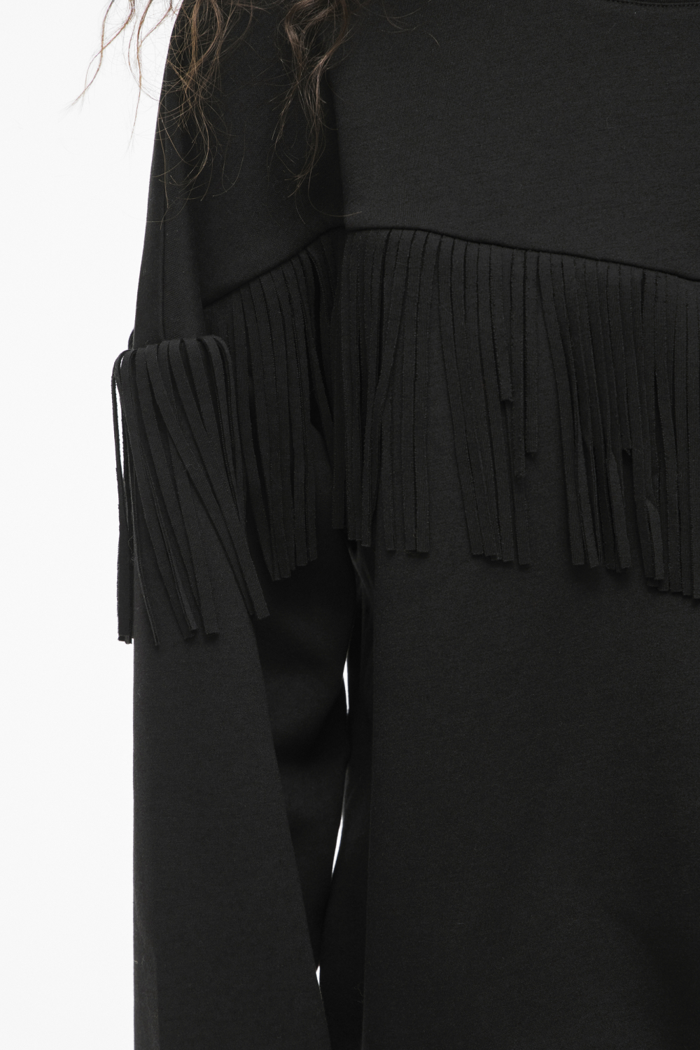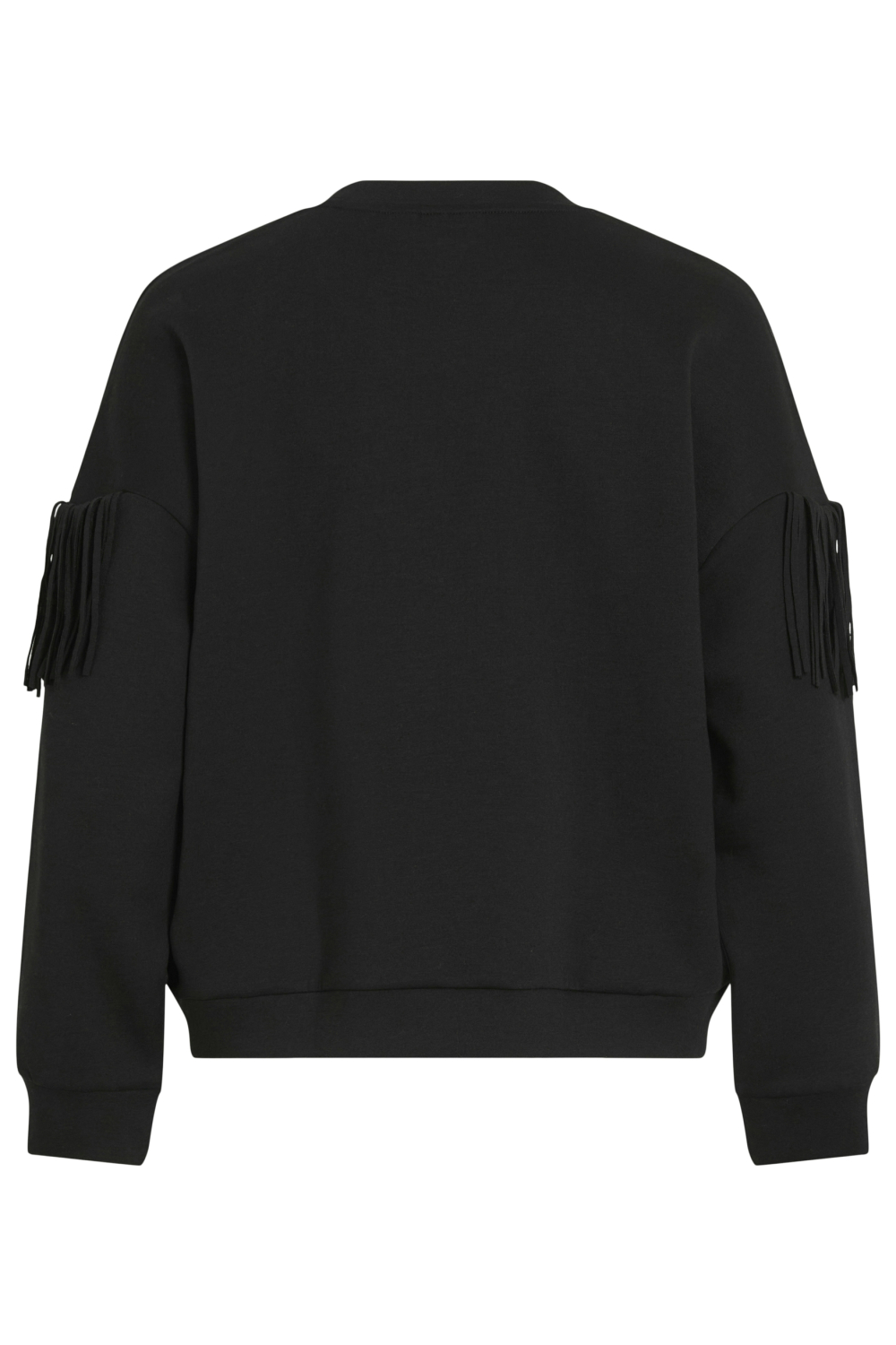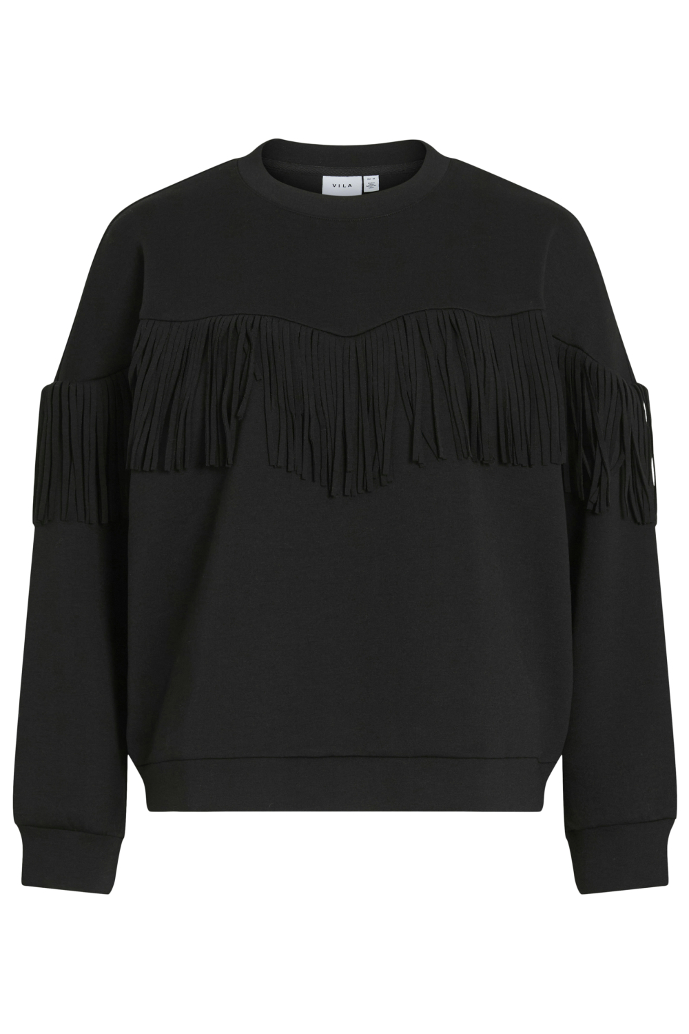 Deze casual sweater van Vila, uitgevoerd in de kleur Black Beauty, is een stijlvolle keuze voor je wintergarderobe. De sweater heeft een regular fit en is gemaakt van een comfortabele sweatstof, ideaal voor ontspannen dagen. De ronde hals en lange mouwen maken deze trui perfect voor een relaxed gevoel. Wat deze sweater echt bijzonder maakt, zijn de speelse franjes die over de borst en op de mouwen zijn geplaatst, wat een unieke twist geeft aan het alledaagse design.