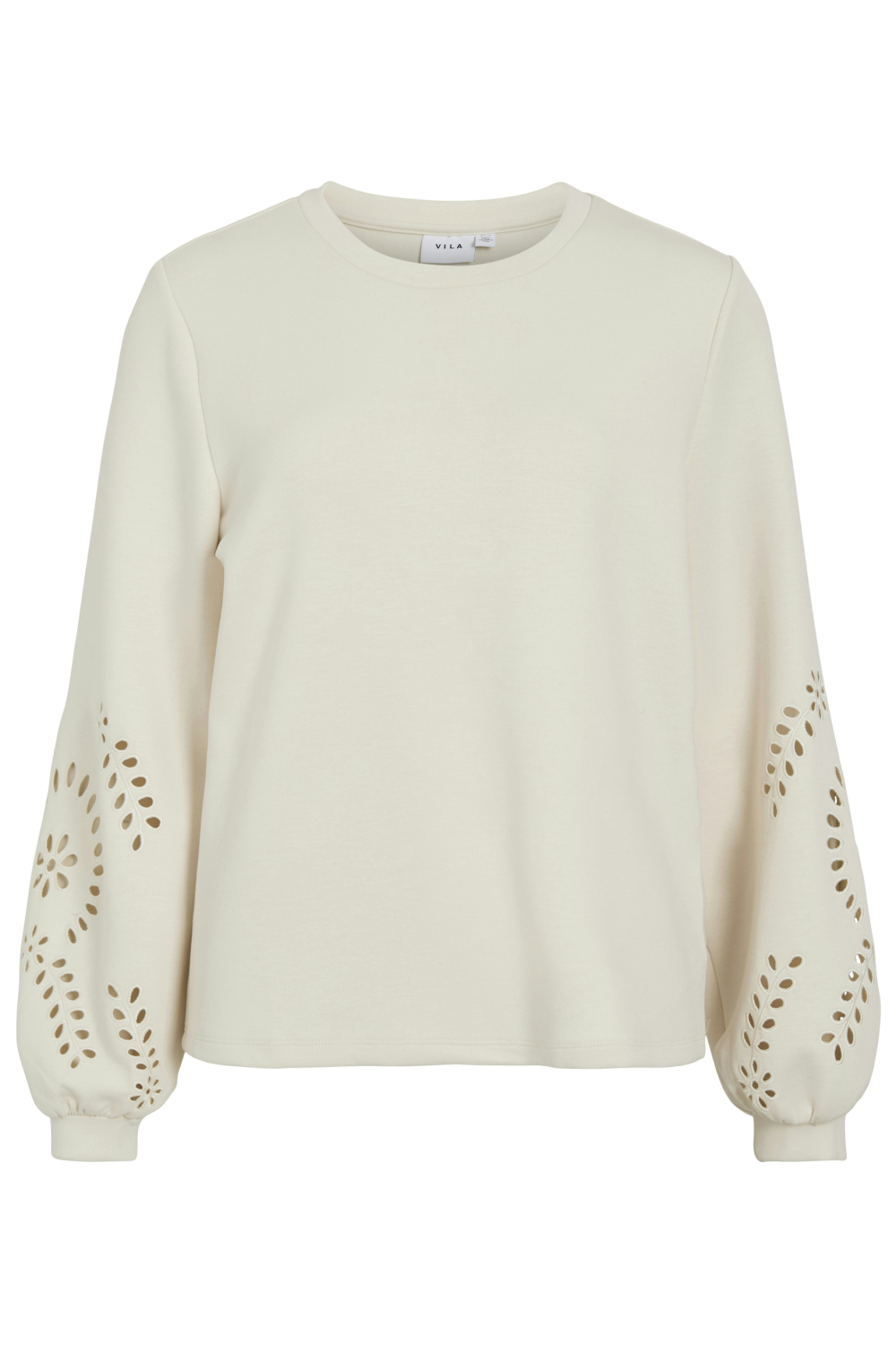 Deze elegante sweater van Vila is een verfijnde keuze voor jouw casual garderobe. Met een regular fit pasvorm biedt deze trui zowel comfort als stijl. De sweater is vervaardigd uit een blend van 50% viscose, 44% polyester en 6% elastan, wat zorgt voor een zachte en soepele stof. Het ajourpatroon op de lange mouwen geeft een speelse twist aan een verder basic ontwerp. De ronde halslijn voegt een klassieke touch toe, ideaal voor informele dagjes uit of een ontspannen lunch. De natuurlijke tint van de trui leent zich uitstekend voor verschillende styling mogelijkheden. Combineer hem met een donkere jeans voor een contrastvolle look of draag hem over een lichte rok voor een zachte uitstraling. Met zijn normale lengte is deze Vilatrui perfect voor het lenteseizoen, wanneer de temperaturen variëren en je een veelzijdig kledingstuk nodig hebt. Deze sweater is een stijlvolle keuze die moeiteloos verschillende fashion statements ondersteunt, van casual chic tot subtiel elegant.