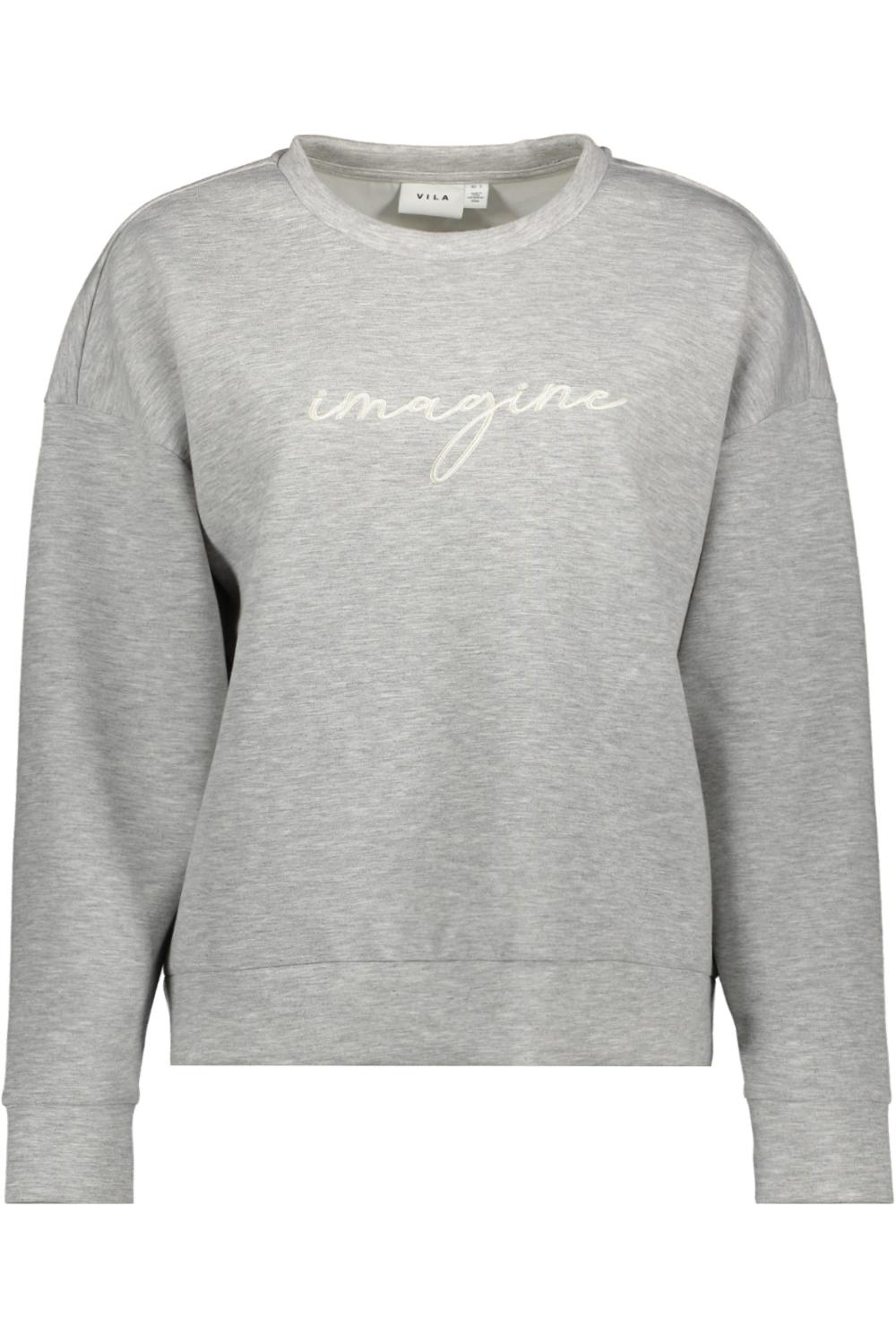 Vila grijze dames sweater | VooraanzichtVila grijze dames sweater | Achteraanzicht