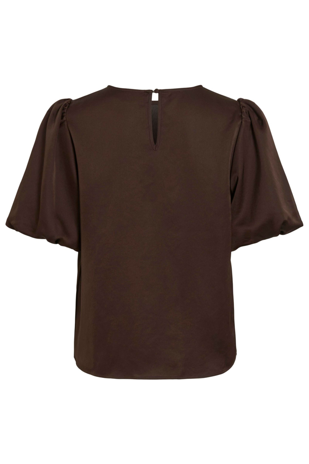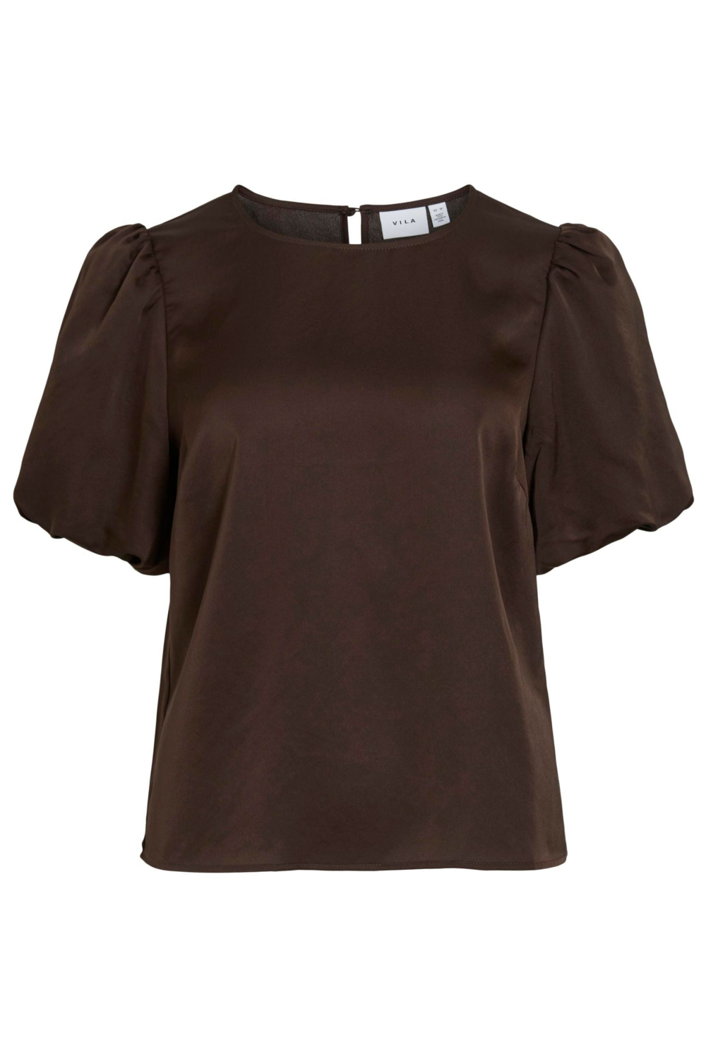 Dit casual T-shirt van Vila in de kleur "coffee bean" is een veelzijdige keuze voor je dagelijkse outfit. De regular fit en de zachte, lichte stof van 100% polyester maken het comfortabel en makkelijk te dragen. Met een ronde hals en een subtiele knoopsluiting aan de achterkant, heeft het shirt een eenvoudige, maar stijlvolle uitstraling. De korte mouwen met lichte plooien voegen een extra vleugje elegantie toe, waardoor het perfect is voor zowel informele ontmoetingen als iets formele gelegenheden.