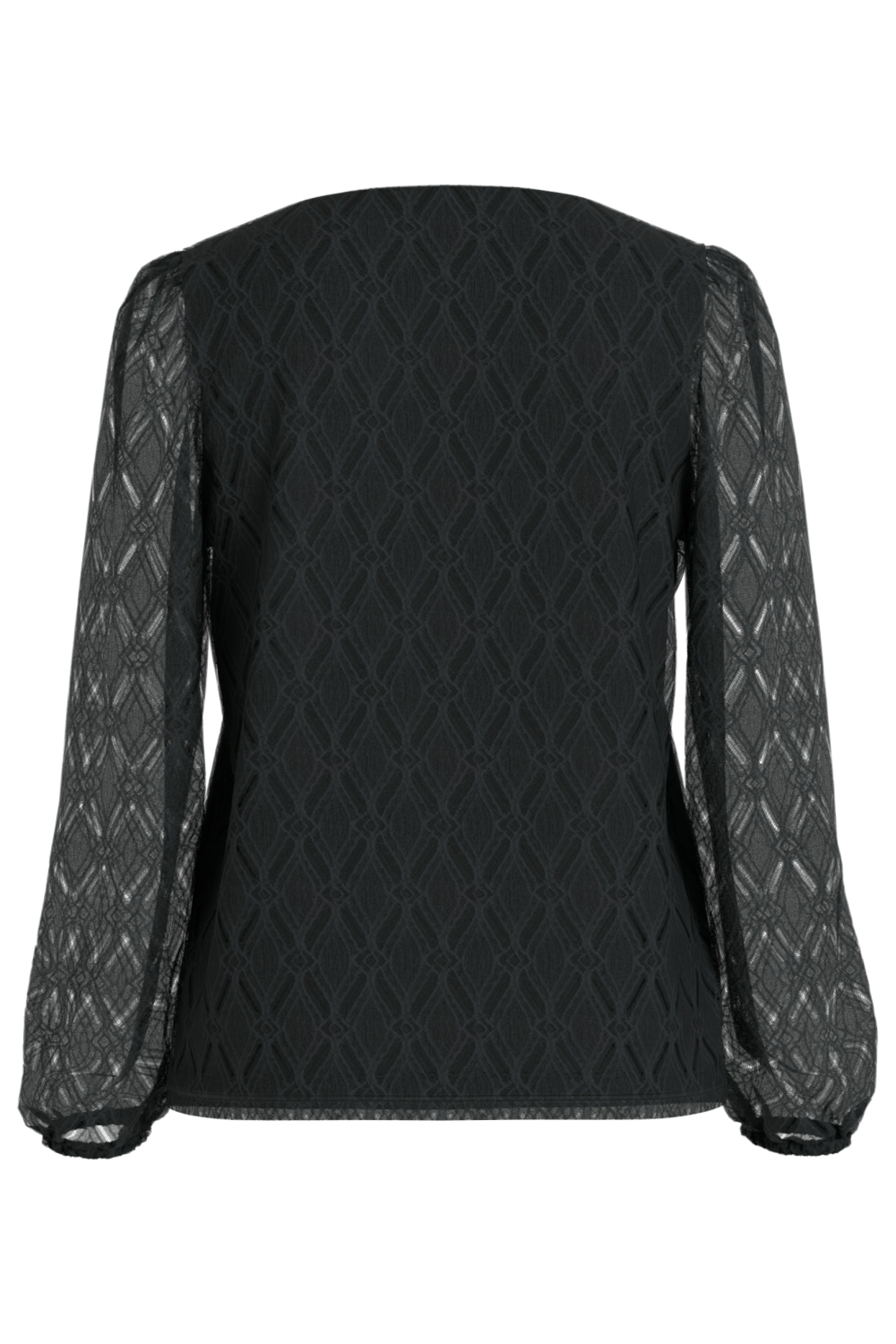Dit zwarte T-shirt van Vila voegt een subtiele elegantie toe aan je garderobe. Het ontwerp is uitgevoerd in de kleur Black Beauty en heeft een opvallend structuurpatroon dat direct in het oog springt. De V-hals geeft het shirt een verfijnde uitstraling en de lange mouwen zorgen voor extra comfort tijdens de koudere winterdagen. Dankzij de regular fit zit het T-shirt altijd goed en biedt het voldoende bewegingsvrijheid, of je nu thuis ontspant of een avondje uitgaat. Gemaakt voor dames die houden van een casual stijl zonder in te boeten op stijl.