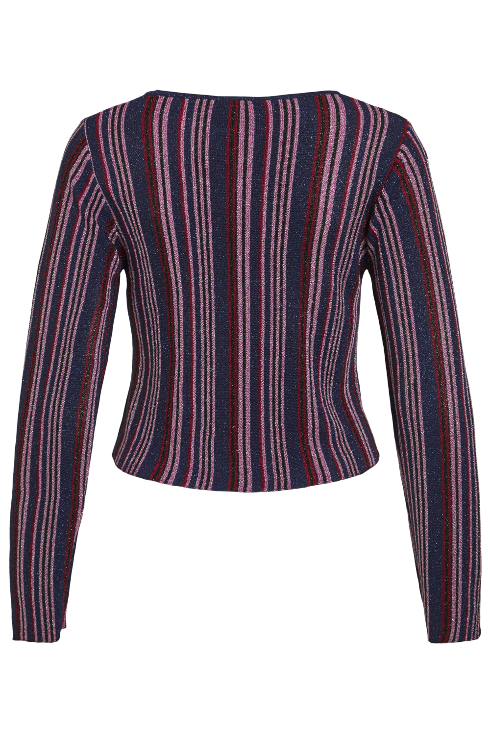 Dit unieke dames T-shirt van Vila is direct een blikvanger met zijn opvallende gestreepte patroon in een combinatie van paarse en roze tinten. Gemaakt van een zachte mix van 63% viscose en 37% metaalgaren, biedt het een comfortabele pasvorm en een subtiele glittering die perfect is voor winterse dagen. De regular fit en boothals voegen zowel stijl als comfort toe aan je dagelijkse look. Met zijn lange mouwen is dit T-shirt ideaal voor verschillende gelegenheden, of je nu een casual dag hebt gepland of een avondje uit. Het tijdloze ontwerp zorgt ervoor dat je het gemakkelijk kunt combineren met zowel een nette rok als een casual jeans. Voeg dit veelzijdige kledingstuk toe aan je collectie voor een stijlvolle touch op koude winterdagen. Dit Vila T-shirt is onderdeel van onze duurzame collectie, ideaal voor elke modebewuste vrouw.