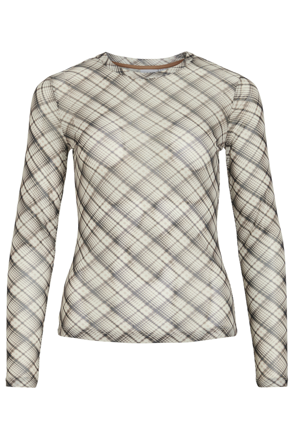 Dit stijlvolle en veelzijdige T-shirt van Vila voegt direct een trendy touch toe aan je garderobe. Met een opvallend geblokt patroon in neutrale tinten, gecombineerd met lange mouwen en een ronde hals, is dit T-shirt een perfecte keuze voor de winter. De slim fit pasvorm sluit mooi aan en accentueert je figuur, wat zorgt voor een modieuze uitstraling zonder in te boeten aan comfort. Gemaakt voor de modebewuste vrouw die houdt van casual maar stijlvolle outfits, kun je dit Vila T-shirt makkelijk combineren met een nette broek voor een dag op kantoor, of met jeans voor een meer ontspannen look tijdens een avondje uit. Het duurzame materiaal zorgt ervoor dat het T-shirt lang mooi blijft, terwijl de normale lengte en veelzijdige stijl ervoor zorgen dat je het keer op keer uit je kast wilt halen voor elke gelegenheid.