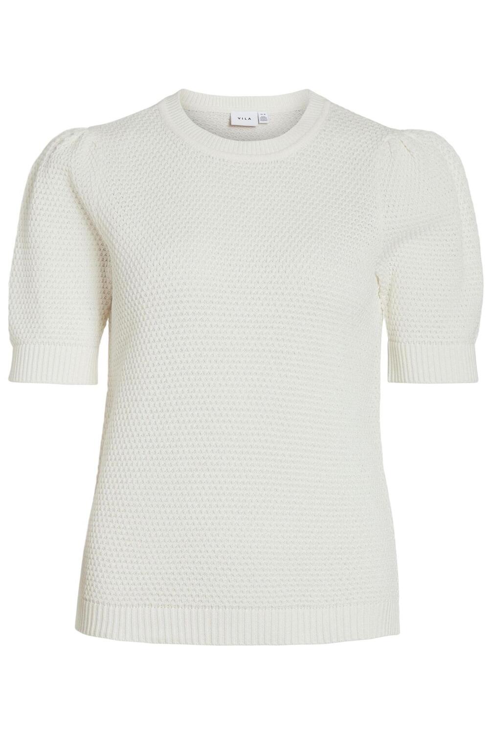 Deze stijlvolle Vila trui in de kleur White Alyssum is een aangename toevoeging aan je garderobe. De trui heeft een reguliere pasvorm en is vervaardigd uit een mix van 50% organisch katoen en 50% katoen, wat zorgt voor een heerlijk draagcomfort. De fijne structuur van het breisel geeft dit kledingstuk een subtiele diepte, terwijl de ronde halslijn en korte mouwen een klassieke uitstraling bieden. De trui komt zonder zakken, wat bijdraagt aan het minimalistische design. Met zijn tijdloze uitstraling is deze trui perfect voor uiteenlopende gelegenheden. Combineer hem met een jeans voor een casual dagje uit, of draag hem met een nette broek voor een meer geklede look. Of je nu thuis werkt of de deur uitgaat, deze Vila trui biedt zowel stijl als comfort. De normale lengte maakt het een veelzijdige keuze die gemakkelijk te combineren is met verschillende stijlen en gelegenheden.