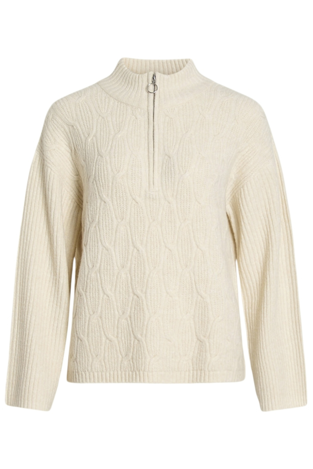 Deze stijlvolle trui van Vila is een veelzijdige aanvulling op je garderobe. Het knitwear design in de zachte birch kleur geeft een warme uitstraling, perfect voor dagelijkse uitstapjes en informele gelegenheden. De regular fit zorgt ervoor dat de trui comfortabel valt, zonder in te boeten op stijl. De high neck met ritssluiting biedt je de flexibiliteit om de look aan te passen naar jouw voorkeur, terwijl de langere mouwen extra comfort en warmte bieden in het koudere seizoen.