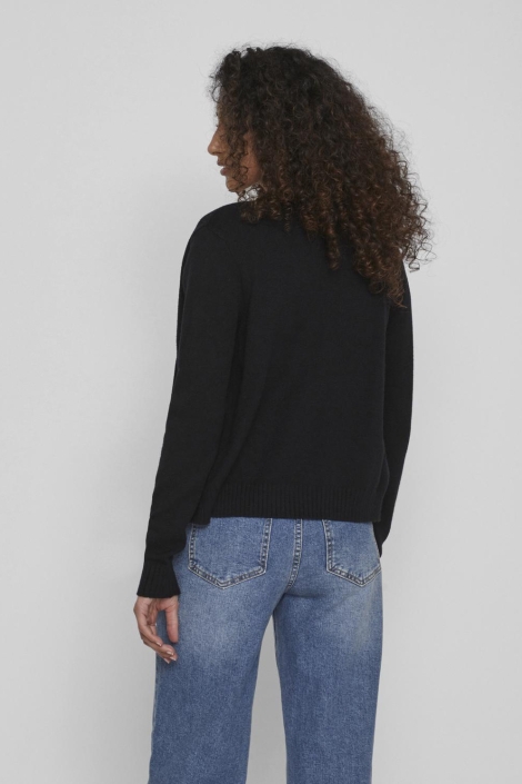 Dit veelzijdige zwarte vest van Vila is een tijdloze toevoeging aan je garderobe. Met een regular fit en lange mouwen biedt het een comfortabele pasvorm die perfect is voor elke dag. Gemaakt van een zachte mix van 50% viscose, 27% nylon en 23% polyester, voelt dit vest zacht aan op je huid en zorgt het voor een warme uitstraling. De normale lengte en de verfijnde afwerking maken het makkelijk te combineren met verschillende outfits, of je nu op kantoor bent of een avondje uit gaat. Dankzij het eenvoudige, maar elegante ontwerp past dit Vila vest bij diverse stijlen en gelegenheden. Draag het over een nette blouse voor een chique look of combineer het met een casual jeans voor een meer ontspannen sfeer. Het subtiele breipatroon en de effen zwarte kleur geven een klassieke uitstraling, terwijl de geribde boorden zorgen voor een nette afwerking. Dit vest is een praktische keuze voor zowel elke dag als voor speciale gelegenheden, en het laat zich moeiteloos integreren in jouw dagelijkse stijl.