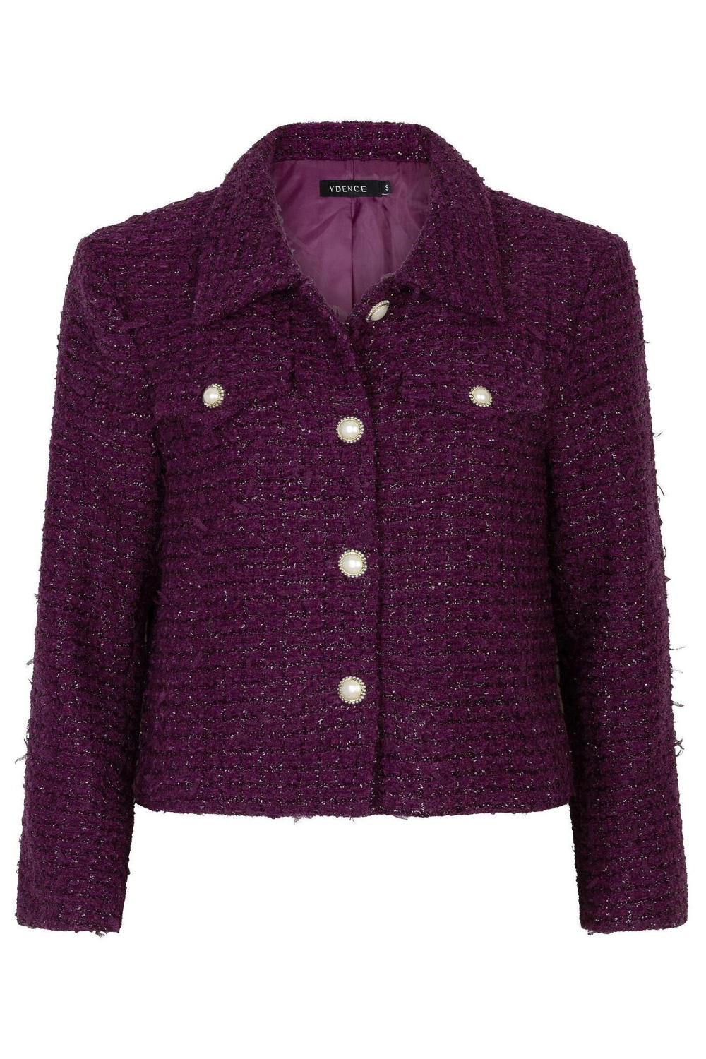 De Ydence damesjas in een rijke auberginetint combineert stijl met comfort. Deze korte winterjas is gemaakt van een mix van 85% polyester en 15% wol, wat een aangenaam warme pasvorm biedt. De schitterende glitters in het patroon zorgen voor een feestelijke uitstraling, ideaal voor een speciale gelegenheid. Met de klassieke puntkraag en opvallende knoopsluiting creëer je een verfijnde look. Of je nu naar een cocktailparty gaat of een avondje uit, deze jas is een echte blikvanger.