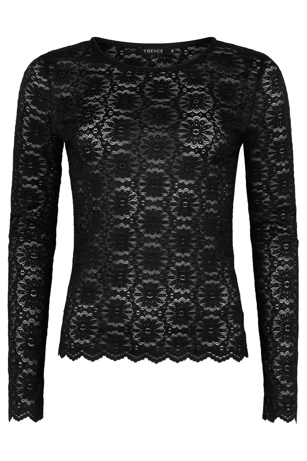 Dit elegante zwarte kant T-shirt van Ydence is een verfijnde keuze voor elke garderobe. Het shirt valt op door het prachtige kantpatroon dat een subtiele en toch opvallende uitstraling geeft. Met een regular fit en lange mouwen biedt het zowel comfort als stijl. De ronde halslijn draagt bij aan de casual uitstraling, waardoor het perfect is voor zowel dagelijks gebruik als meer speciale gelegenheden. Dankzij het tijdloze ontwerp kun je dit T-shirt moeiteloos combineren met verschillende kledingstukken. Draag het bijvoorbeeld met een stijlvolle rok voor een chique avondlook, of combineer het met een jeans voor een meer ontspannen dagje uit. Door de normale lengte is het eenvoudig te combineren met zowel hoge als lage tailles. Het is de ideale keuze voor de winter en biedt je een stijlvolle oplossing op koude dagen, zonder concessies te doen aan comfort.