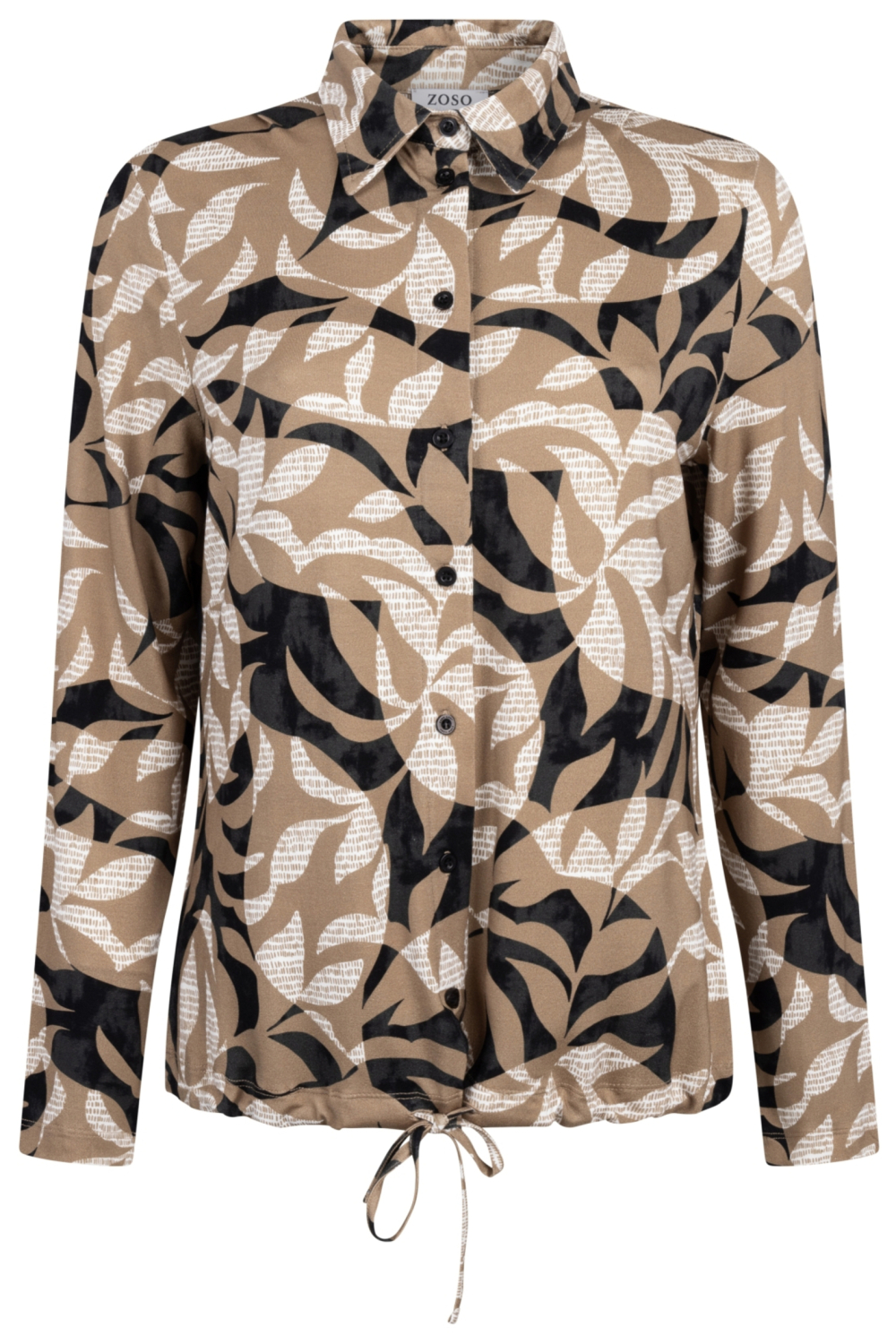 Deze Zoso damesblouse in 1110 camel combineert comfort met een stijlvol ontwerp. Het grafische patroon in het camel en zwart geeft je outfit een gedurfde uitstraling. Met een regular fit en gemaakt van 94% viscose en 6% elastan, biedt deze blouse draagcomfort voor diverse gelegenheden. De klassieke puntkraag en knoopsluiting zorgen voor een elegante afwerking, waardoor je zowel modebewust als comfortabel voor de dag komt.