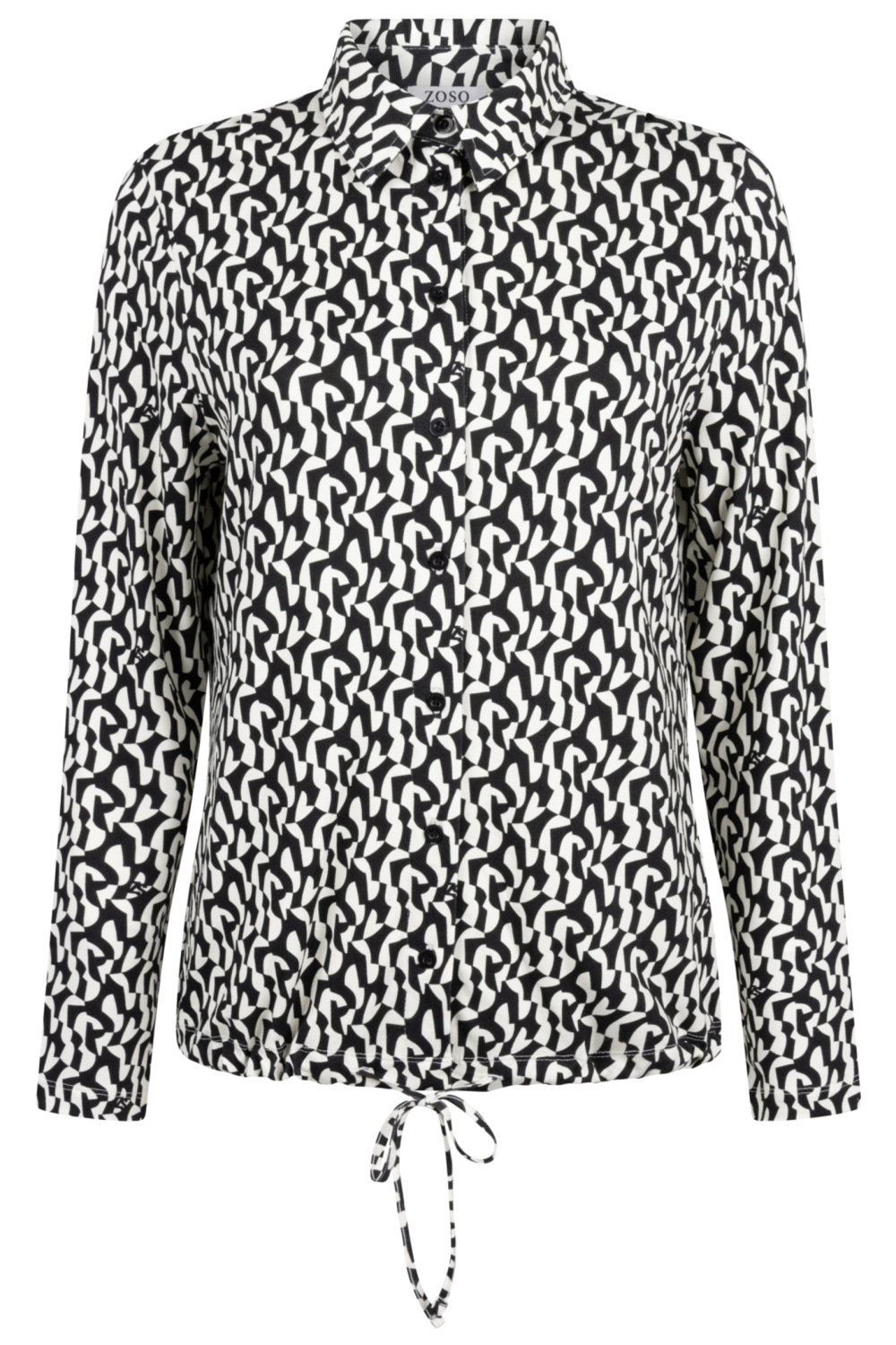 Deze Zoso blouse is een stijlvolle keuze voor dames met een fijne gevoel voor mode. De grafische print in off white en zwart trekt zeker de aandacht en geeft een eigentijdse twist aan je outfit. De regular fit zorgt ervoor dat de blouse comfortabel zit, terwijl de lange mouwen en de puntkraag bijdragen aan een elegante uitstraling. De knoopsluiting geeft het geheel een klassieke touch, wat hem veelzijdig maakt voor diverse gelegenheden. Gemaakt van 95% viscose en 5% elastan, biedt deze blouse zowel comfort als een lichte stretch, perfect voor een hele dag dragen. De normale lengte maakt het gemakkelijk om de blouse stijlvol te combineren met zowel casual jeans voor een informele look, als met een nette broek voor een professionelere setting. Of je nu een dag op kantoor hebt of een avondje uit plant, deze blouse is een betrouwbare keuze die je garderobe zeker zal verrijken.