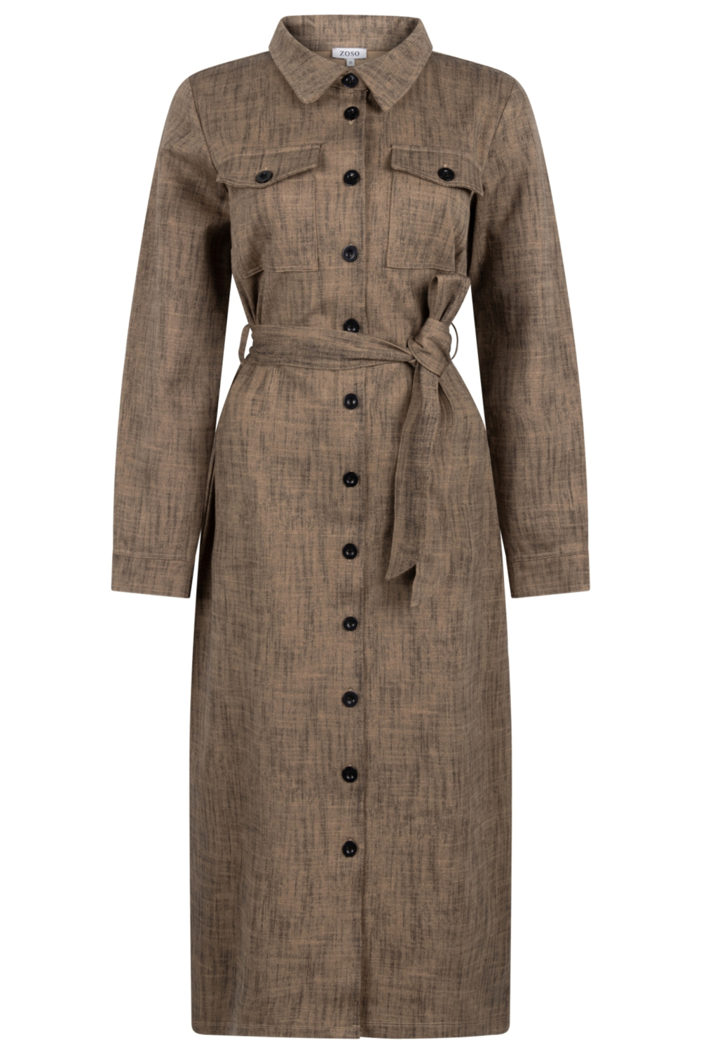 Dit veelzijdige kledingstuk is ideaal voor de winter en kan zowel in een zakelijke als een informele setting gedragen worden. De lange mouwen en borstzakken voegen praktische details toe aan het ontwerp. Combineer deze Zoso jurk met je favoriete laarzen voor een moeiteloze look tijdens een dagje uit of een ontspannen avondje thuis. Of je nu naar kantoor gaat of een ontspannen dag in de stad plant, deze jurk is een stijlvolle keuze die je met gemak kunt dragen.