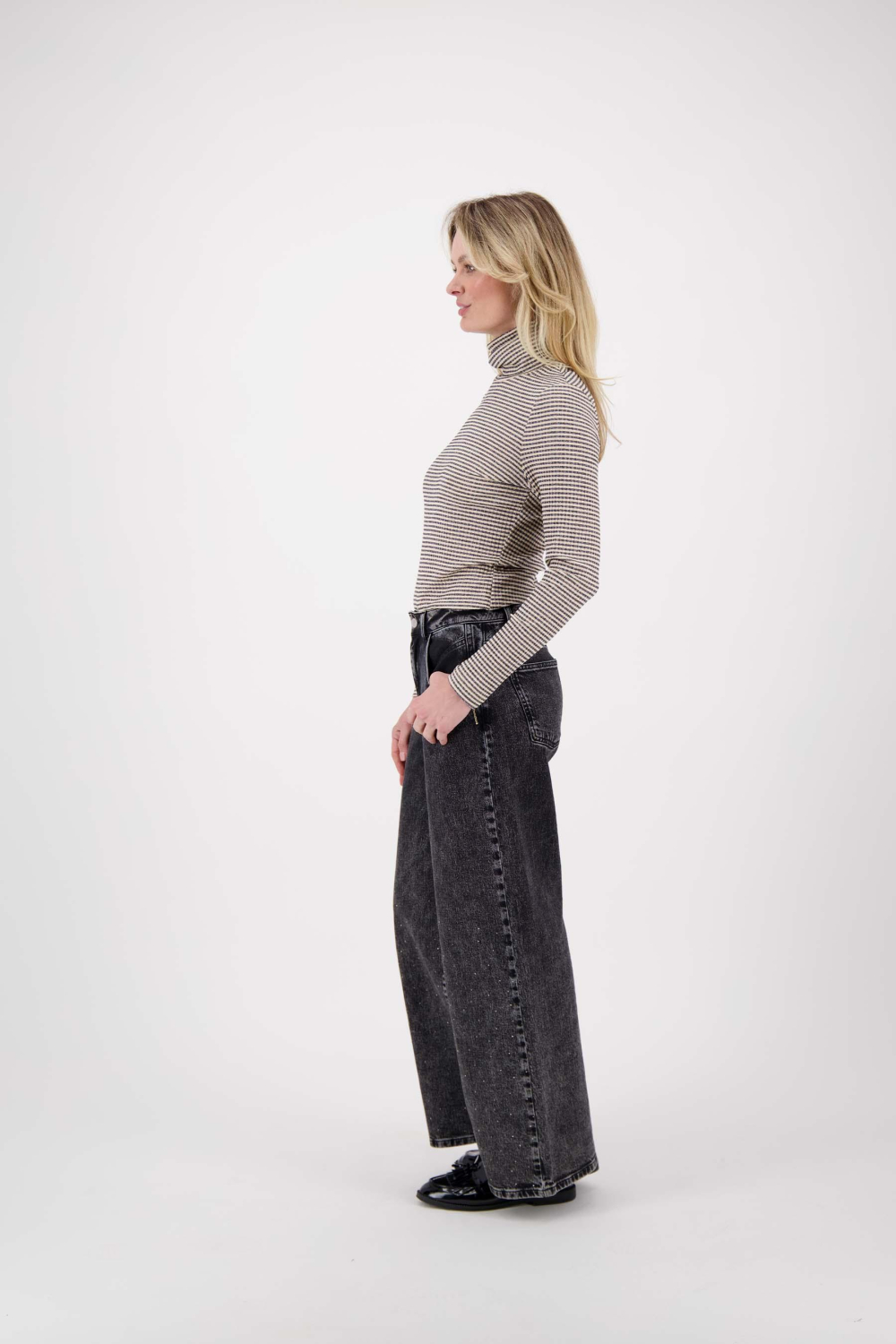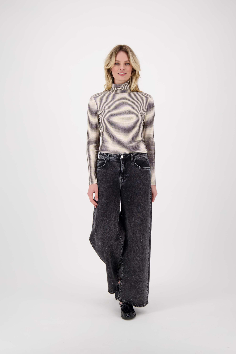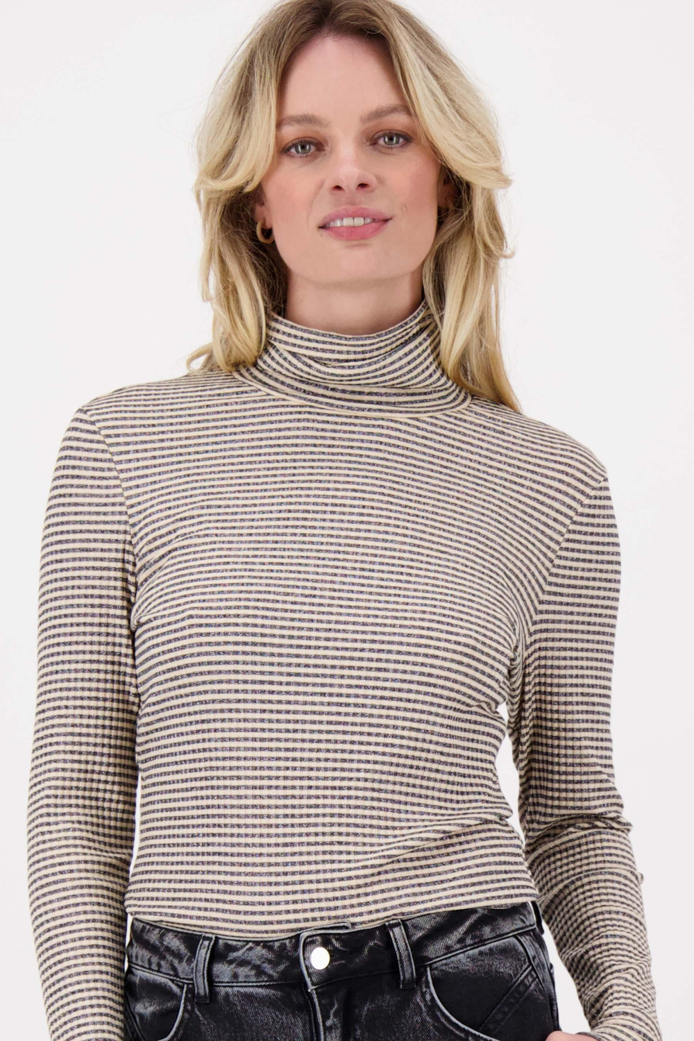 Dit stijlvolle coltrui T-shirt van Zusss combineert comfort met een unieke uitstraling. De subtiele glitters en het gestreepte patroon geven een speelse touch aan het ontwerp. Met een regular fit die mooi om het lichaam valt, biedt het zowel bewegingsvrijheid als een flatterende look. De colkraag voegt een extra laagje warmte toe, waardoor dit T-shirt ideaal is voor de wintermaanden.